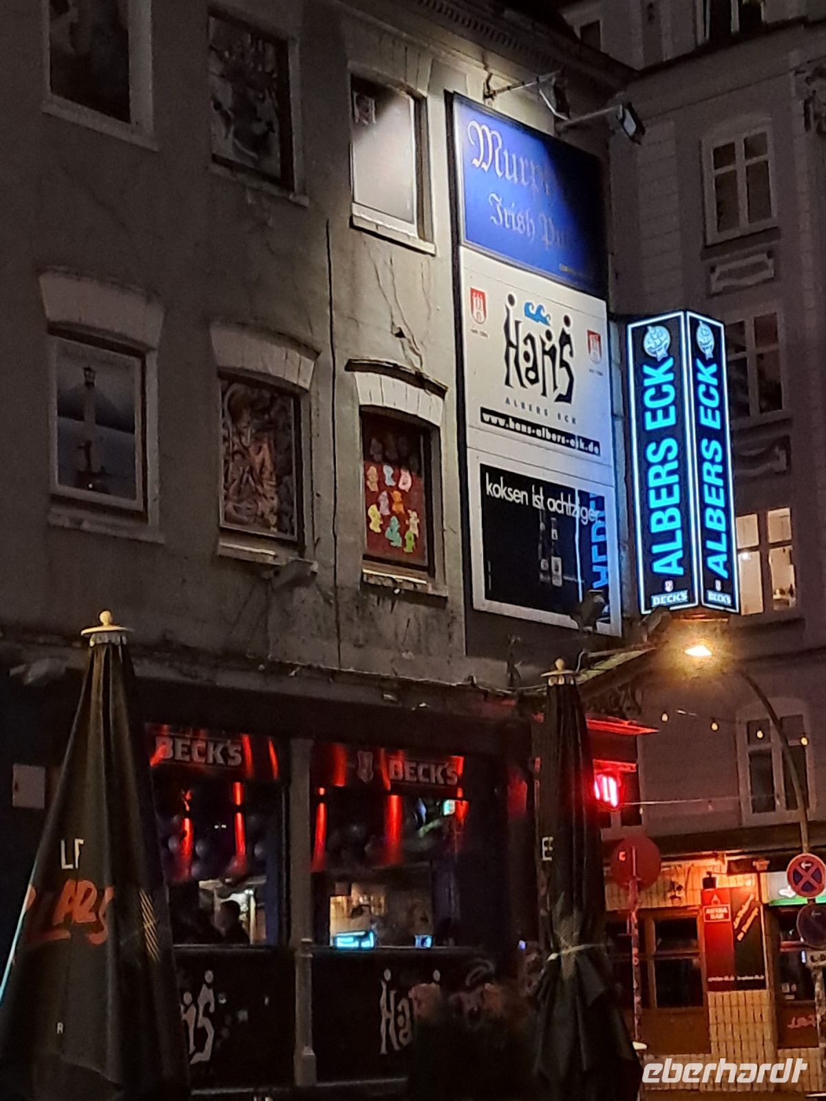 Der Nachmittag konnte individuell gestaltet werden. Am frühen Abend startete die Kieztour durch St. Pauli, ja richtig, mit Joshua, der seit über 20 Jahren im Kiez lebt und natürlich alle Veränderungen im Laufe der Jahre selbst begleiten durfte. Es war schon bei der Begrüßung klar, dass der geplante Zeitrahmen bei diesem sympathischen Mundwerk schwer einzuhalten sein wird. Und er zeigte uns alles: alteingesessene und moderne Theater, die deutschlandweit wohl bekannteste Polizeistation Davidwache, den ersten Sexshop auf der Reeperbahn und natürlich die Straßen, wo die Sexarbeiterinnen ihrer Tätigkeit nachgehen. Er zeigte uns aber auch, wo Kinder schöne Spielplätze finden können, erklärte, dass es in St. Pauli ziemlich gute Schulen gibt und dass man insgesamt im Kiez gerade mit Familie sehr gut leben kann. Und wo die Kneipen sind, das hat er uns natürlich auch gezeigt und uns zu einer kleinen Einkehr in seiner Lieblingsfischbrötchenbude verführt. Herrlich. Ganz zum Schluss ging es noch über die Große Freiheit, wo am Sonntag Kirchgänger und Partyvolk aufeinander treffen, ach ja, die Bar von Olivia Jones durften wir natürlich auch entdecken. Ein gelungener Auftakt in Hamburg.