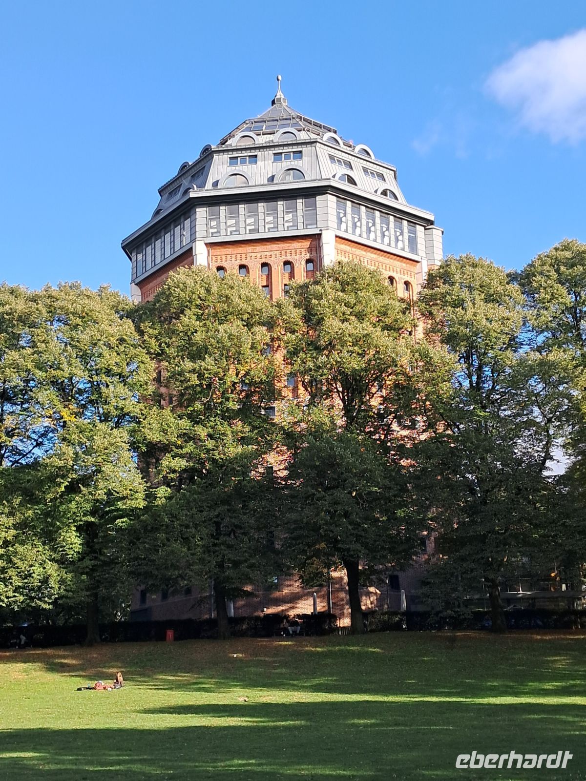 Unser Hotel beeindruckte schon von Weitem. Ein ehemaliger Wasserspeicher mitten in einem großen Park liefert zum einen den perfekten Eintritt und Auftritt über eine lange Rolltreppe ins Innere, zum anderen hochmoderne Zimmer mit bestem Ausblick auf die Stadt Hamburg. Schöner Wohnen ist hier Programm. Und das reichhaltige Frühstück, da fehlen einem die Worte.