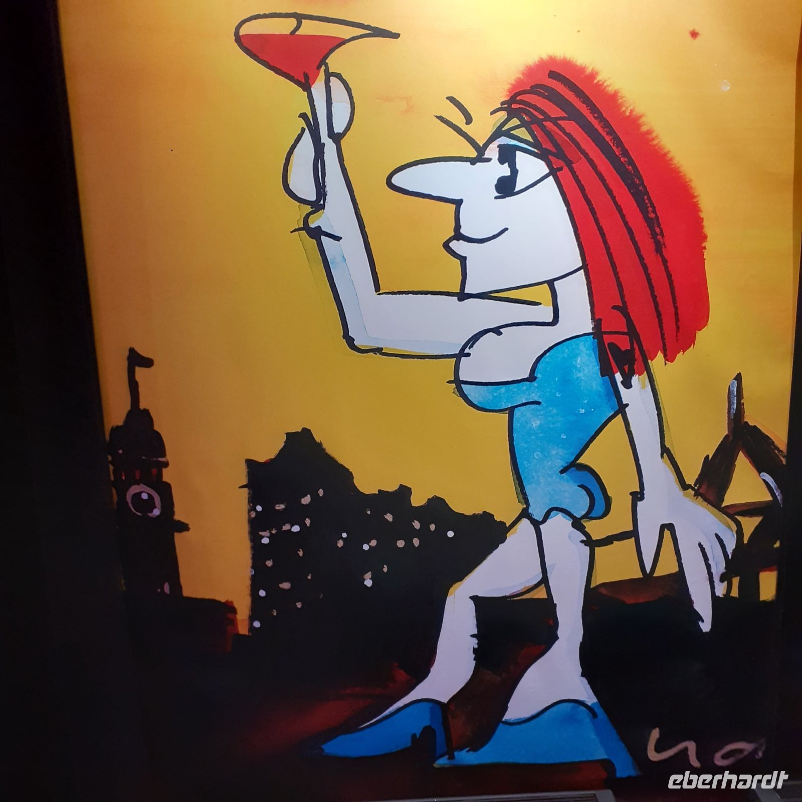 Dabei konnten wir auch einen Blick in das Hotel Atlantik und sein Wohnzimmer werfen. Im Nächsten Raum steht man und schaut auf verschiedene Bilderrahmen. Dort erscheint Udo, seine Schwestern, der ehemalige Manager und sein bester Freund und sprechen über die Kindheit in seinem Geburtsort in Gronau. Und natürlich über den Beginn seiner Kariere als Schlagzeuger in einer Jazz Band. Nun ging es in Udos Tonstudio. Wir stellten uns an ein Mikro setzten Kopfhörer auf und es wurde gesungen. Die Musikaufnahme kann man im Nachhinein herunterladen. Das Nächste Thema war Udo und die DDR. Jeder bekam ein Tablet mit Kopfhörer und wenn man es an die Objekte hielt, wurde ein Film abgespielt. Damit konnten wir eintauchen in ein Konzert im Palast der Republik, erhielten Einblick in seine Stasi Akte, erlebten seine Begegnung mit Erich Honecker als er ihm seine Gitarre überreichte und blickten nach Zwickau als er den letzten Trabant der vom Band lief geschenkt bekam. Wir wir wissen malt Udo gerne. In einer nachgestellten Bar sind einige Gemälden von Lindenberg ausgestellt. Wir nahmen an Tischen mit einem Bildschirm Platz. Dort konnte jeder sein eigenes Udo Werk mit Likörfarben kreieren und sich diese im Anschluss per Mail an sein Handy senden. Nach dem Gang durch Backstage-Raum konnten wir uns wieder setzen. Es wurde ein Film über Kampagnen gezeigt, für die Udo einsteht z.B. Kampf gegen Rechts und gegen Waffen. Anschließend setzt man eine Multimedia-Brille auf und man steht mit Udo auf der Bühne – mit dem Stuhl kann man sich 360-Grad drehen und ins Publikum schauen. Auch wenn man kein Udo Lindenberg Fan ist das Museum ein besonderes Erlebnis. Zum Abschluss wurde in der Bar „Alte Liebe“ ein Eierlikör gereicht. Mit vielen neuen Eindrücken und Erlebnissen verließen wir Hamburg und traten unsere Heimreise an.