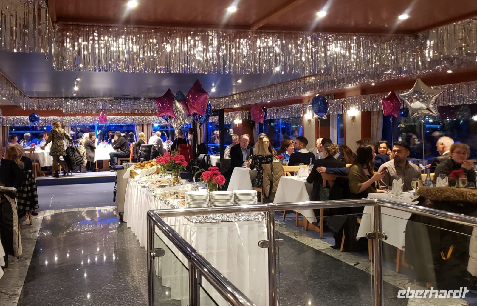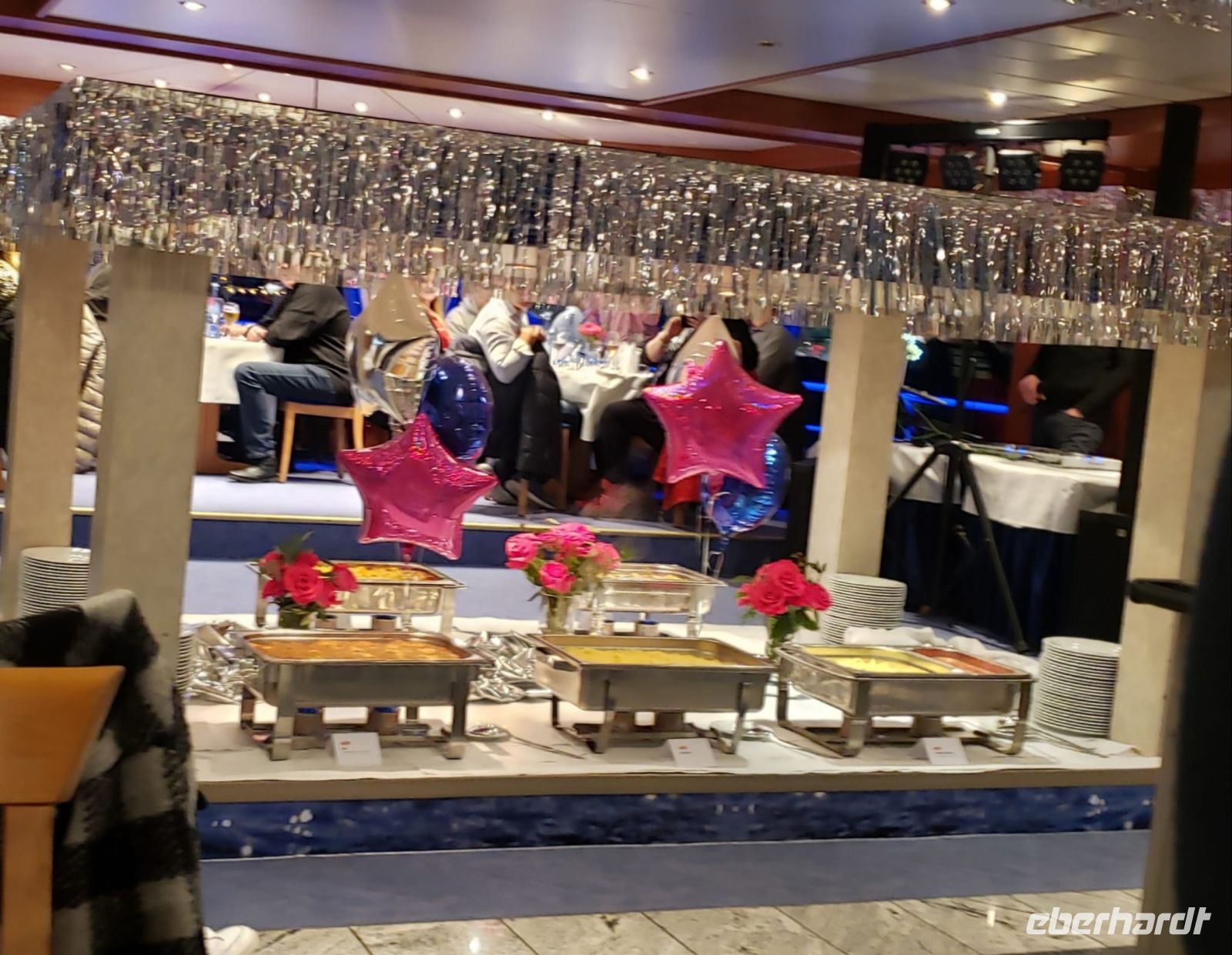 Wir feiern den Jahreswechsel auf der MS Hansestar! Das ganze Schiff ist wunderschön geschmückt. Unsere Bedienung Frederike ist ein Schatz und liest uns jeden Wunsch von den Augen ab. Es gibt ein tolles Buffet und anschließend darf getanzt werden. Um Mitternacht sind wir alle auf dem Oberdeck und bestaunen das Feuerwerk im Hamburger Hafen, es ist einfach unbeschreiblich schön! Danach wird noch ein Weilchen weiter gefeiert und getanzt, bevor das Schiff wieder anlegt.