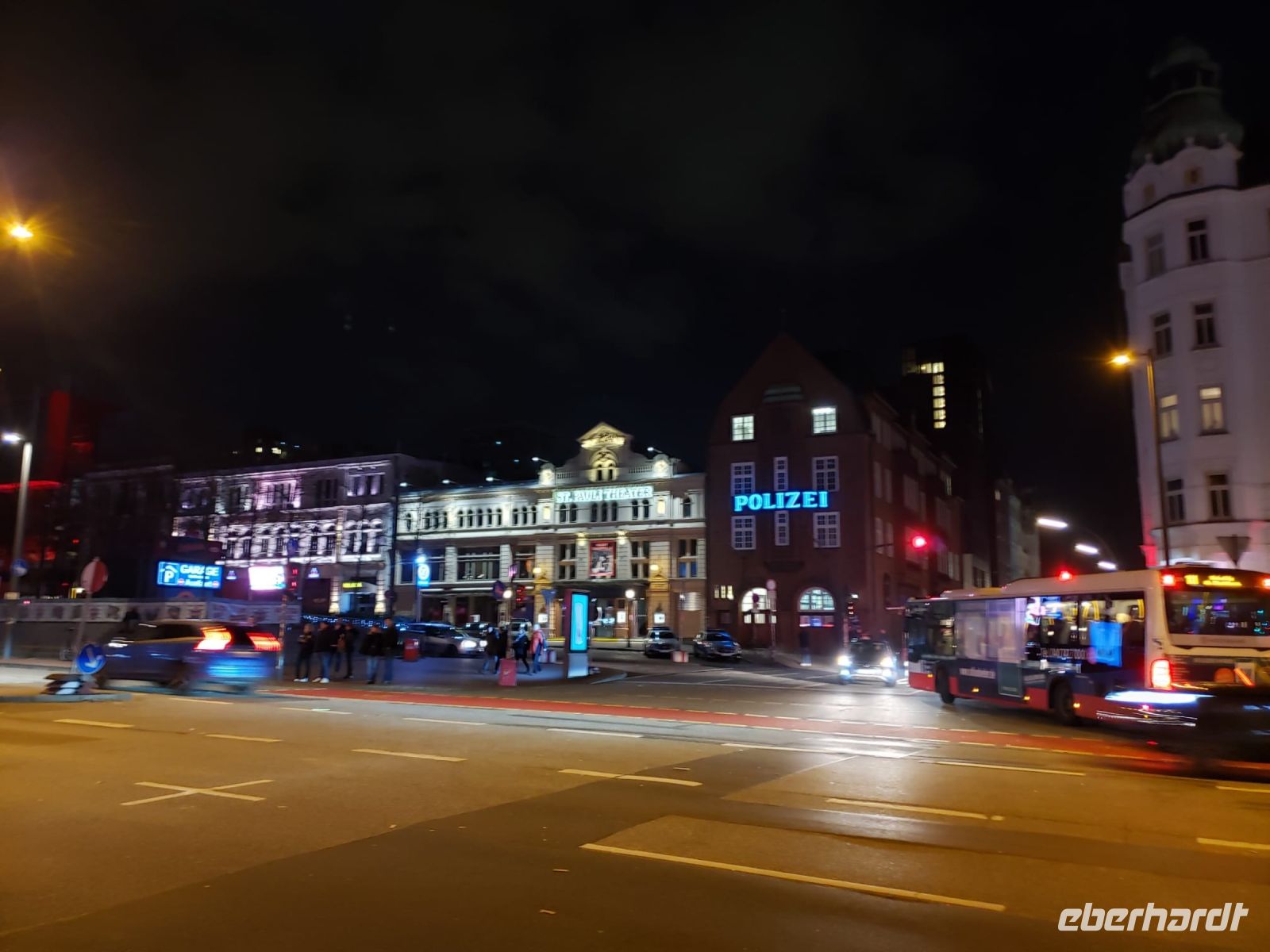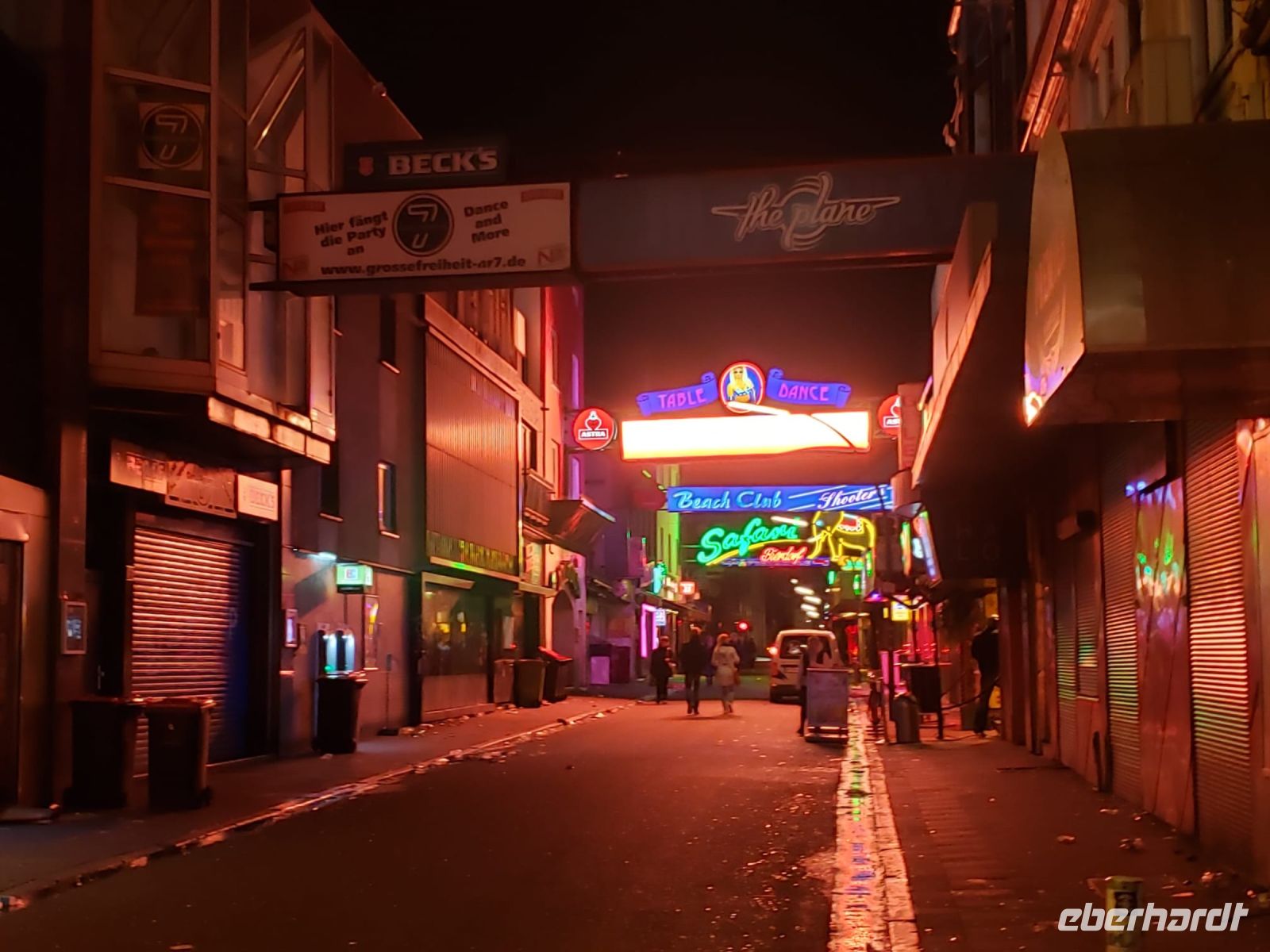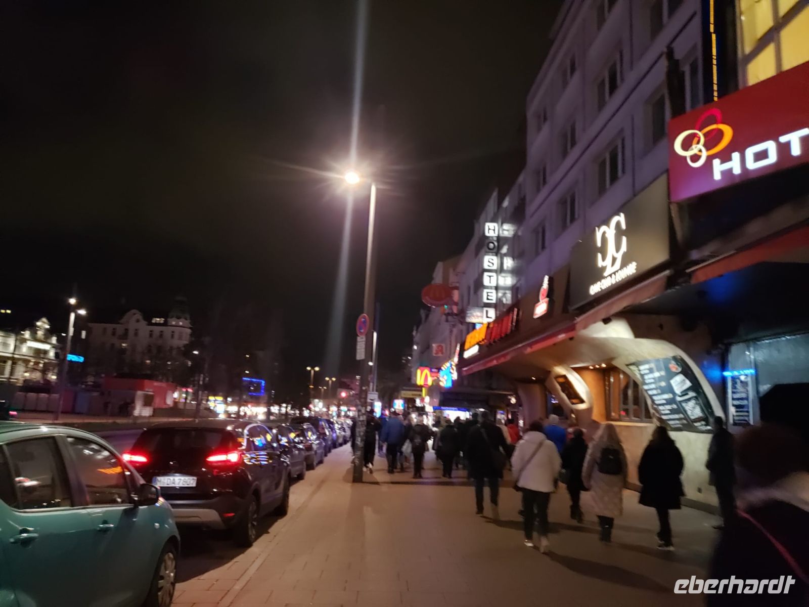 Als es dunkel wird, fahren wir zur Reeperbahn. Wir machen eine Kiez-Tour mit Alex, ein richtig cooler Typ, der hier in St. Pauli zu Hause ist und uns vieles zu erzählen hat.
