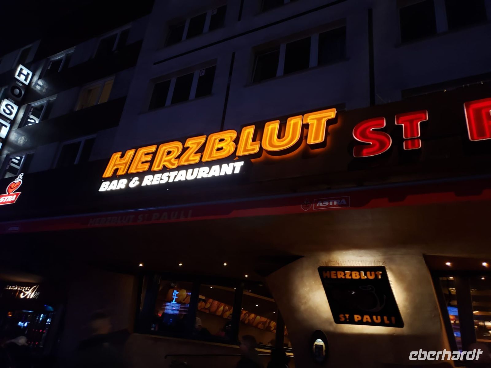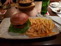 Zum Abschluss des Tages gehen wir in das Restaurant Herzblut direkt auf der Reeperbahn. Die meisten essen den legendären Hamburger.