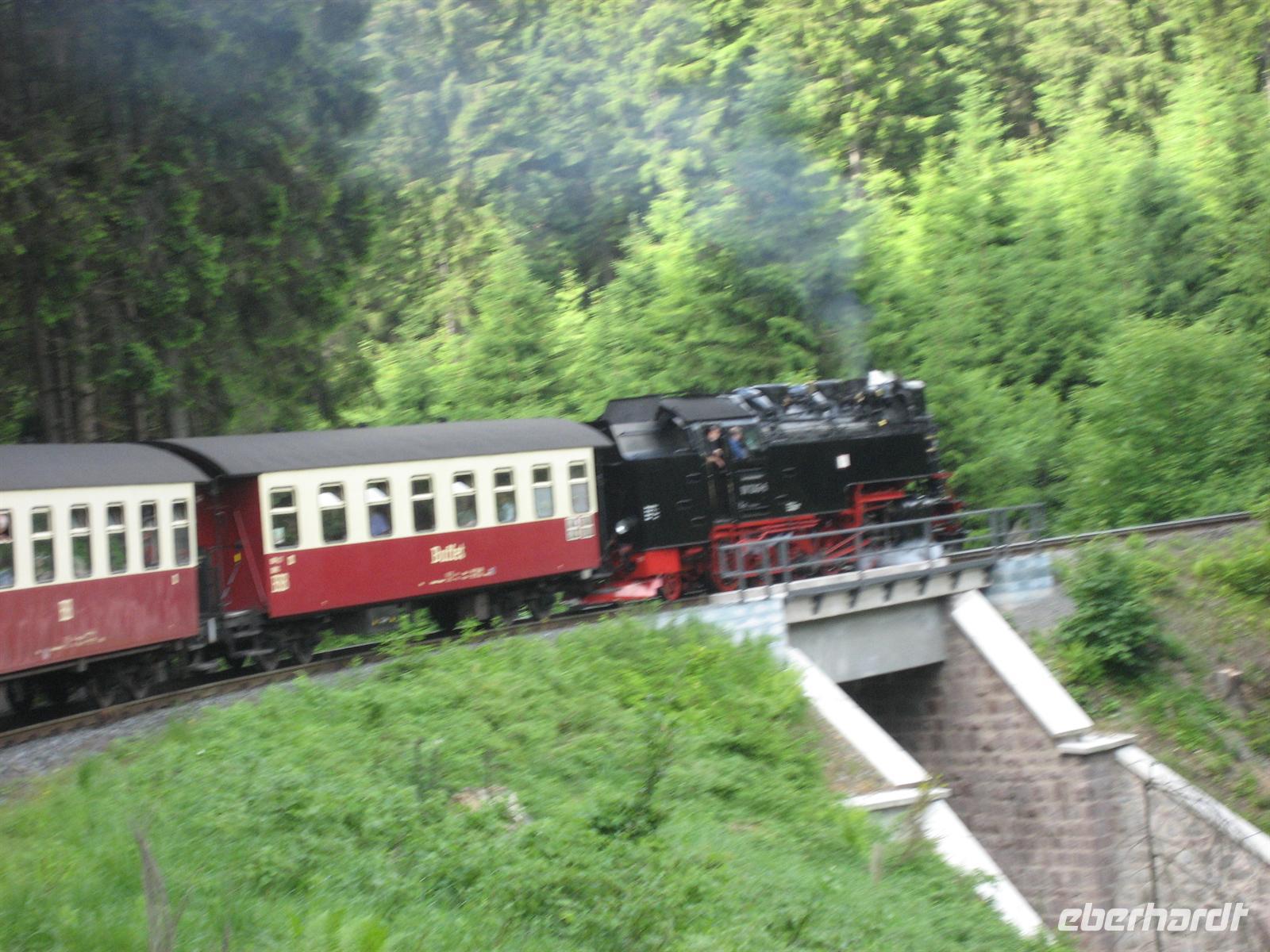 Einmal Zug fahren, in der heutigen Zeit ein Verkehrsmittel was ja nicht mehr so oft genutzt wird, und dann auch noch auf den Brocken. An 306 Tagen im Jahr soll es da oben Nebel geben - ob wir zu den Glücklichen zählen? Wir sind die Glücklichen, die Sonne meint es wieder gut mit uns. Eine kurze Fahrt bis nach Nordhausen mit dem Bus und dann beginnt die schöne Fahrt mit der Schmalspurbahn durch den Harz. Pünktlich rattert unsere kleine Bahn los, ca. 60 km werden wir in 3,5 Std. fahren, zum Glück sind die Sitze recht bequem und auch gepolstert. In Drei Annen Hohne kurze Pause für die Lok-Wasser auffüllen- für die Gäste am Bahnsteig eine gegrillte Bratwurst essen etwas trinken. Nur noch 19 km bis auf den Brocken, die Fahrt immer um den Berg, dichte Wälder oder auch schöne Blicke bis nach Wernigerode. Auf 1142 m angekommen können wir zunächst unser Mittagessen beim ,,Brockenwirt“ natürlich bei schöner Aussicht genießen. Ob Erbsensuppe, Putengeschnetzeltes oder Kohlroulade, es schmeckt wunderbar. Nun möchte aber jeder noch den legendären Brocken zu Fuß erkunden. Uns bleiben ca. 2 Std. bis zur Rückfahrt nach Wernigerode. Um 18:00 Uhr wechseln wir wieder Bahn gegen Bus. Am Abend wird uns auf der Waldbühne in Altenbrack noch ein Extra geboten. Vom Hotel organisiert werden wir einen ,,Sommernachtstraum“ erleben. Die Waldbühne mit Tischen und Bänken ausgestattet, Musik und gutem Essen wird zum Ende unserer Reise ein schöner Abschlussabend. Ein buntes Programm aus Volksmusik, Operette, Musical und Ballett lassen den Abend sehr schnell zu Ende gehen.