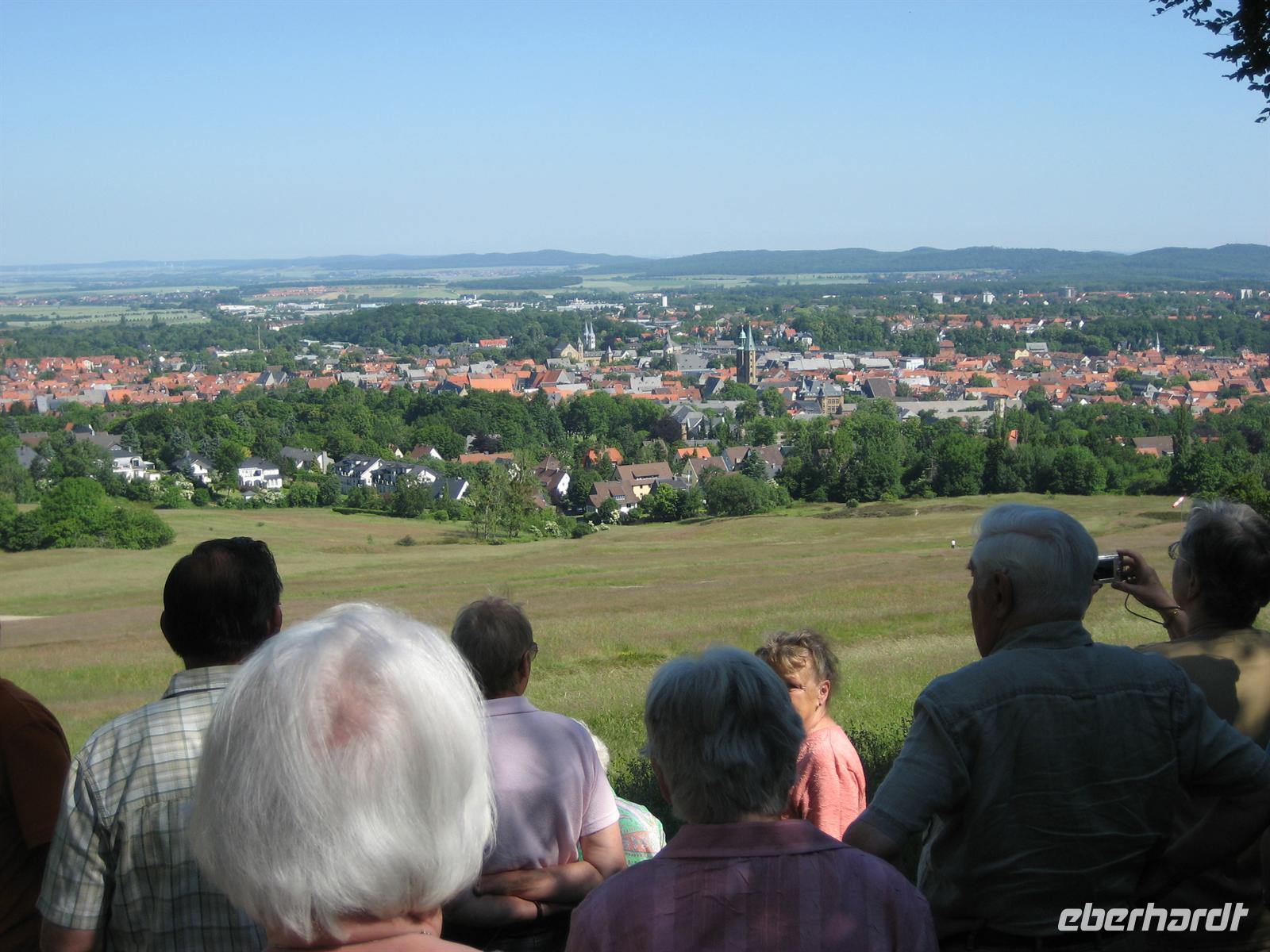 Zur Walpurgisnacht kommen Tausende Besucher auf den Hexentanzplatz, doch wir sind heute fast ganz allein. Ob wir eine Hexe sehen werden? Kleine Späße am Rand und wir befinden uns auf diesen legendären Platz, doch zuvor haben wir uns noch das Bergtheater angesehen. Es bietet einen wunderschönen Blick in das Tal hinein. Durch das Bodetal führen viele Wanderwege, wir nehmen den Bus, denn bis Quedlinburg ist es schon ein ganzes Stück. Am Parkplatz empfängt uns der Stadtführer, eine kleine Absprache mit unserer Reiseleiterin und dann geht es schon los. Da es heute wieder sehr warm ist können wir erst noch ein Stück von Quedlinburg vom Bus aus genießen. Doch nun geht es zu Fuß durch die Altstadt. Was für ein Glück, das wir nicht mehr im Mittelalter leben, denn da wurden nur Frauen aus höchsten Adel und Königshäusern geduldet. Über 1200 Fachwerkhäuser eines schöner wie das andere. Kleine Gassen wo einst die Handwerker lebten, das Brauhaus, Kunsthöfe aus der modernen Zeit, das Rathaus mit seinem Marktplatz davor. Wir können nur staunen über so viele verschiedenen Fassaden der Fachwerkhäuser und die handwerklichen Künste. Nun ist erst einmal Mittagspause.
