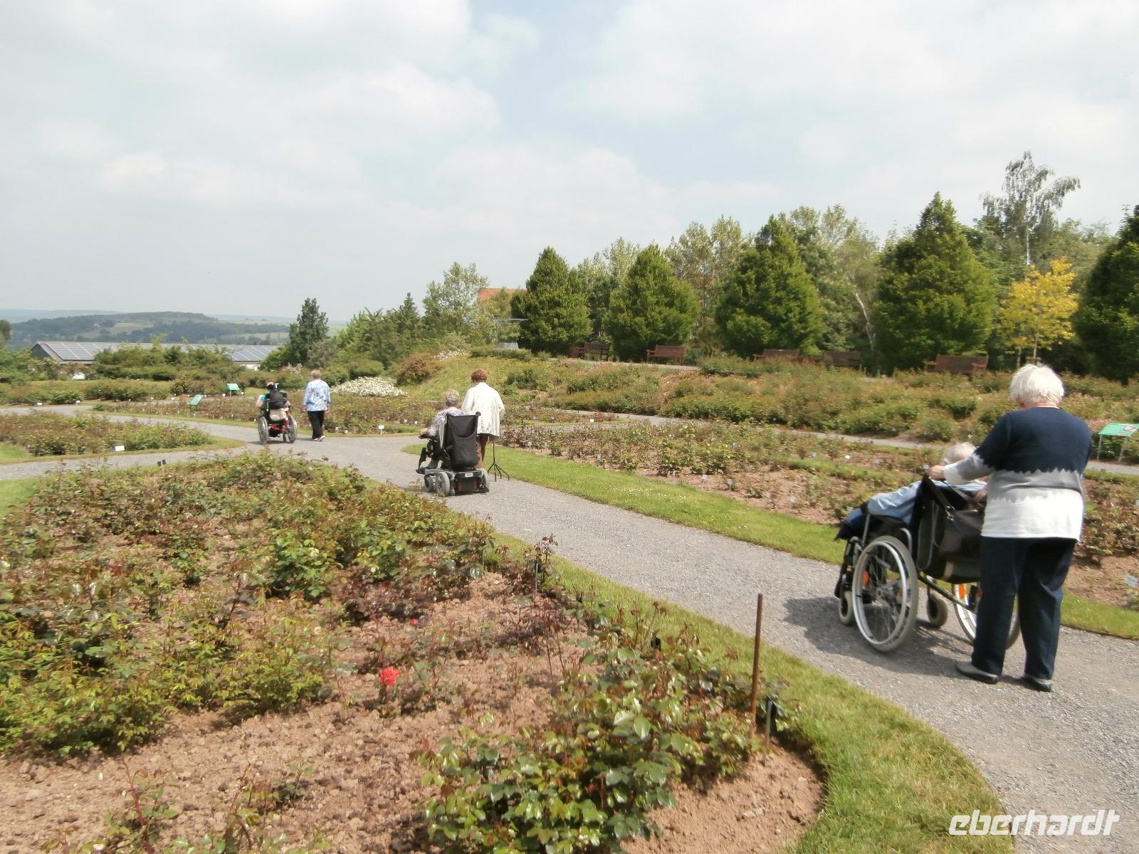 Wir starten unsere Reise in Dresden mit sieben Rollstühlen und 16 Gästen. Nach den Wettervorhersagen rechnen wir mit schlechtem Wetter, aber wir erleben es weitaus besser. Als WOW legen wir in Sangerhausen im Europa-Rosarium unseren ersten Stopp ein. Es wurde 1903 gegründet und hier können über 8000 Rosensorten bewundert werden. Auf einem Gelände von 15 ha ist der Rosenpark angelegt, Rosen vom Altertum bis in die Moderne werden hier präsentiert. Wir sehen auf unserem Rundgang vereinzelt Rosen blühen, die Blühsaison geht ja erst richtig los. Weiter geht die Reise, in Nordhausen in der Traditionsbrennerei lassen wir uns in die Geheimnisse der Spirituosenherstellung einweihen. Später werden wir zur Verkostung der verschiedenen Destillate eingeladen und da gibt es nicht nur den Korn, auch Liköre verkosten wir. Die Höhenzüge des Harzes durchfahren wir, auch den Brockenblick haben wir und am späten Nachmittag erreichen wir in Goslar unsere Hotelunterkunft. Für die nächsten Tage sind wir in der GDA Senioren-Residenz Schwiecheldt Haus Goslar GmbH untergebracht. Hier im Hotel, was vor allem als Seniorenresidenz betrieben wird, ist man auf Rollstuhlfahrer bestens eingestellt und die Zimmer sind sehr geräumig und behindertengerecht. Das gemeinsame Abendessen ist spitze und wird uns an den Tisch serviert.