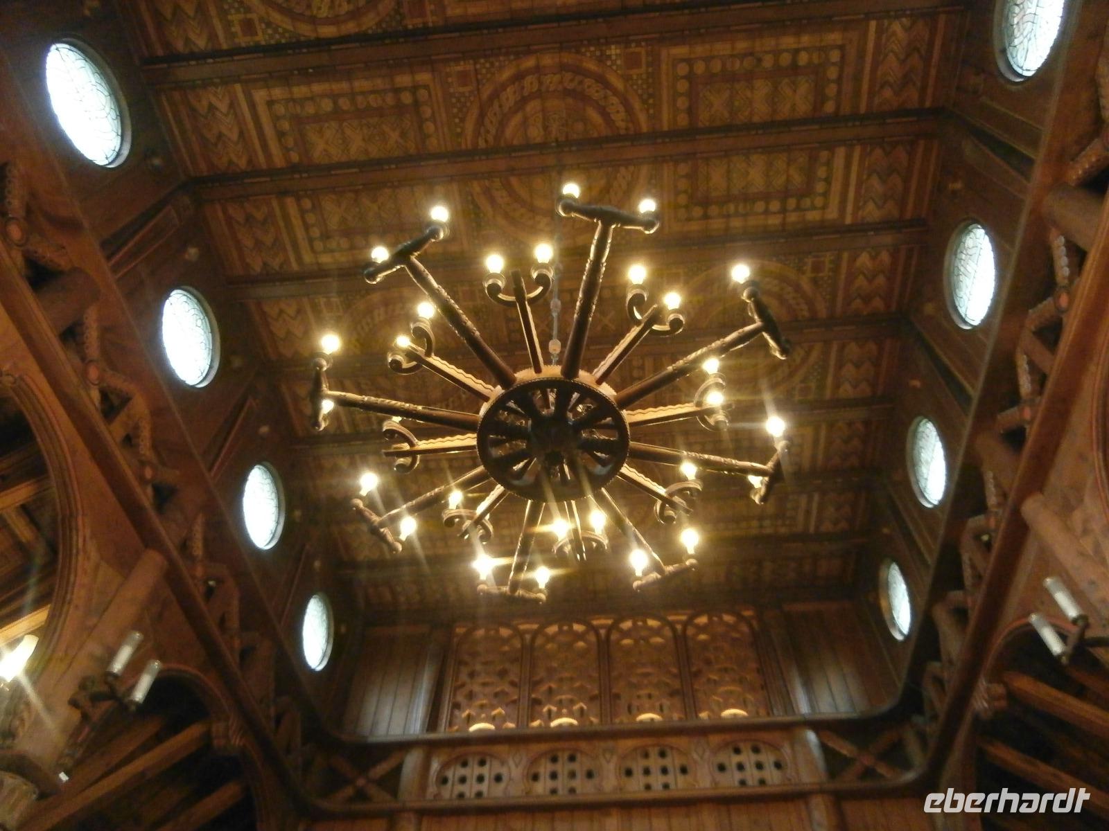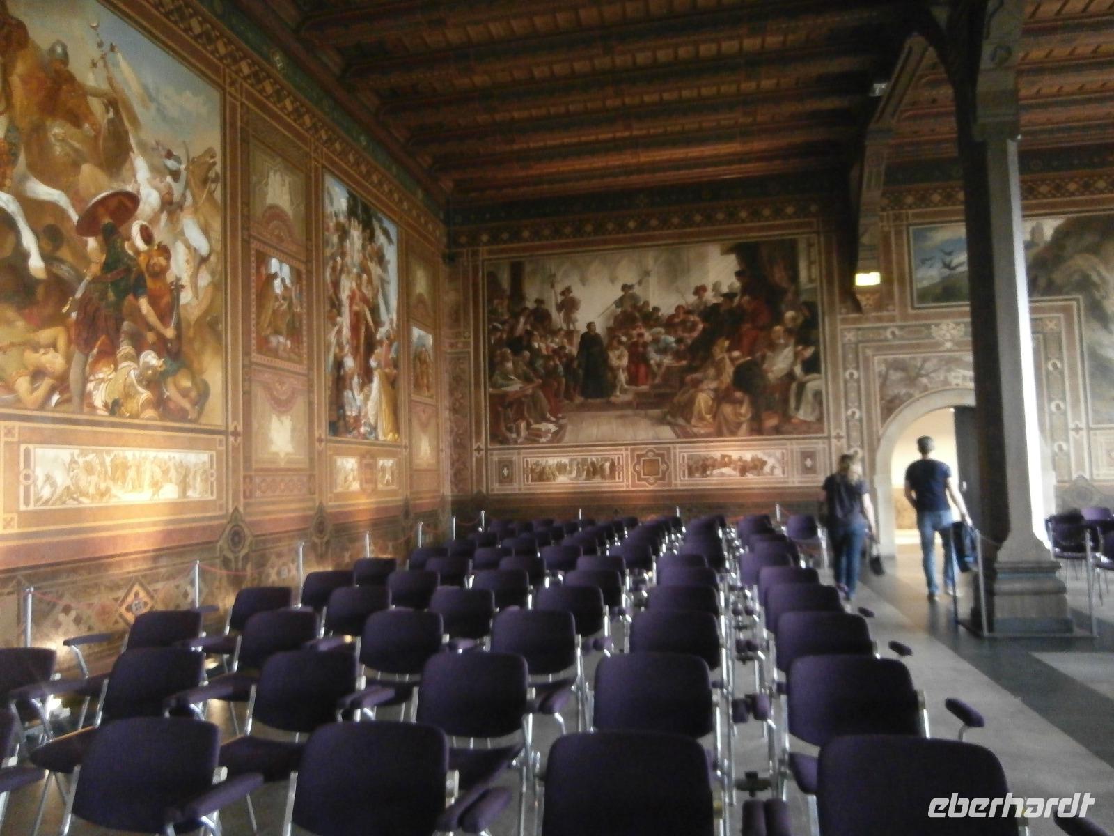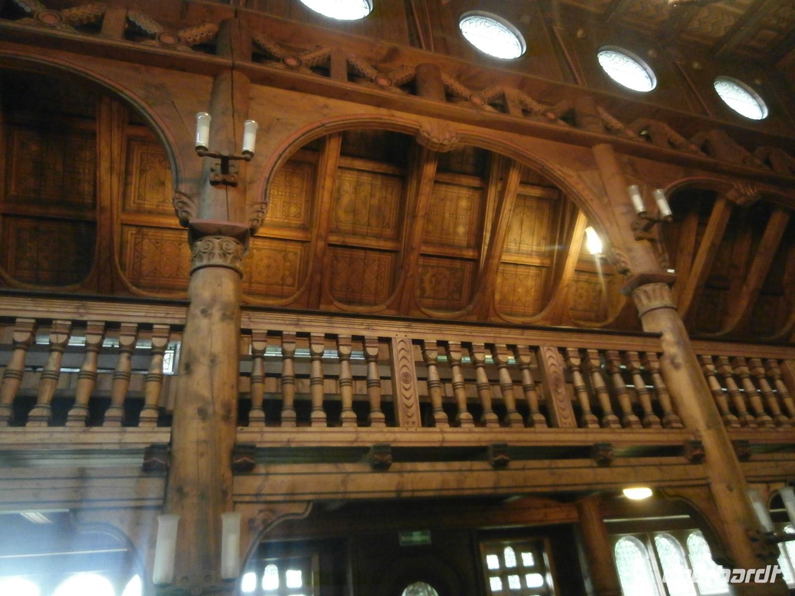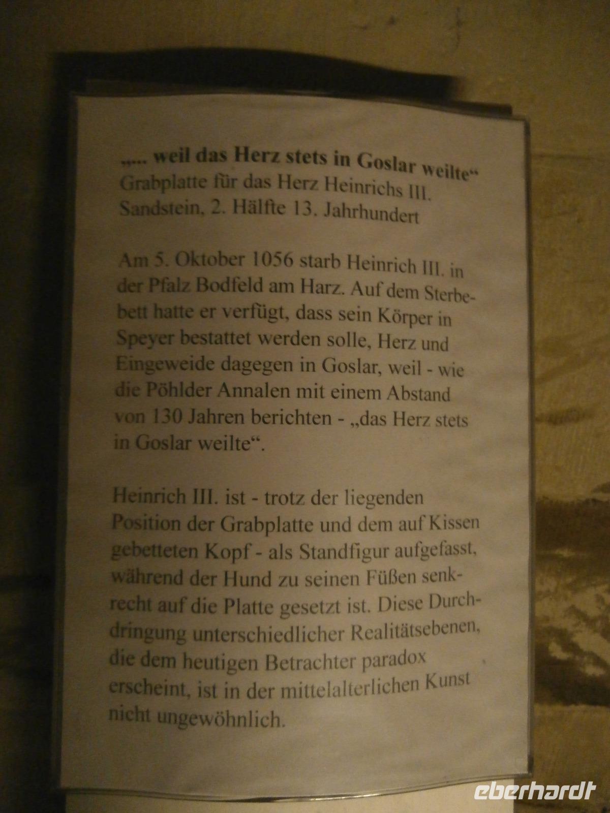 Bei trübem Wetter stehen heute Vormittag die Kaiserstadt Goslar und die Kaiserpfalz auf unserem Programm. Ab Hotel beginnt unser Rundgang mit der örtlichen Gästeführerin durch diese alte einst Freie Reichsstadt mit den kopfsteingepflasterten Gassen, die wir teilweise umfahren. Wir erhalten einen schönen Gesamteindruck von der Fülle der sehr unterschiedlichen Fachwerksubstanz, die reichlich verziert ist, in dieser Stadt. Der Marktplatz ist das Herzstück der Altstadt mit dem Marktbrunnen, dem Rathaus, welches grad umfassend restauriert wird und dem Glocken-und Figurenspiel, es ist mehrmals am Tage in Aktion zu erleben. Weiter Eckpunkte unseres Rundganges sind die Marktkirche, sie war eine dreischiffige Basilika um 1150 erbaut, das Patrizierhaus Brusttuch aus 1526 und dann kommen wir an der mächtigen Kaiserpfalz, als Romanischer Pfalz Bau im 11. JH errichtet, an. Mit einem Lift haben wir bequem Zugang zum großen Saal mit den fantastischen Wandmalereien zur deutschen Geschichte. Nach Freizeit und Aufenthalt im Hotel machen wir uns am zeitigen Nachmittag mit dem Bus auf den Weg nach Hahnenklee. Hier steht die einzige Stabkirche in Deutschland, errichtet nach dem Baustil der norwegischen Stabkirchen. Für uns etwas ganz Besonderes, diese Stabkirche im Harz zu sehen. Ingrid hat eine Anlehnrampe in der Kirche organisiert, so dass wir mit den Rollis bequem hineinfahren können. Von einer CD gibt es sehr viel Informatives zur Stabkirche, als kleine Spende von Eberhardt Travel ausgegeben. Ingrid singt noch ein Lied „Dona Nobis Pazem", es ist für uns alle ein sehr schönes Erlebnis in der Stabkirche zu Hahnenklee.