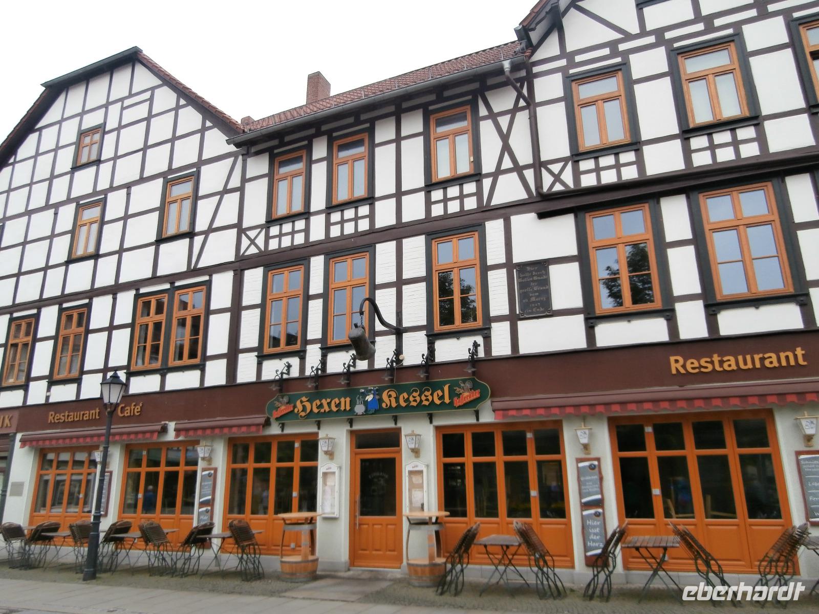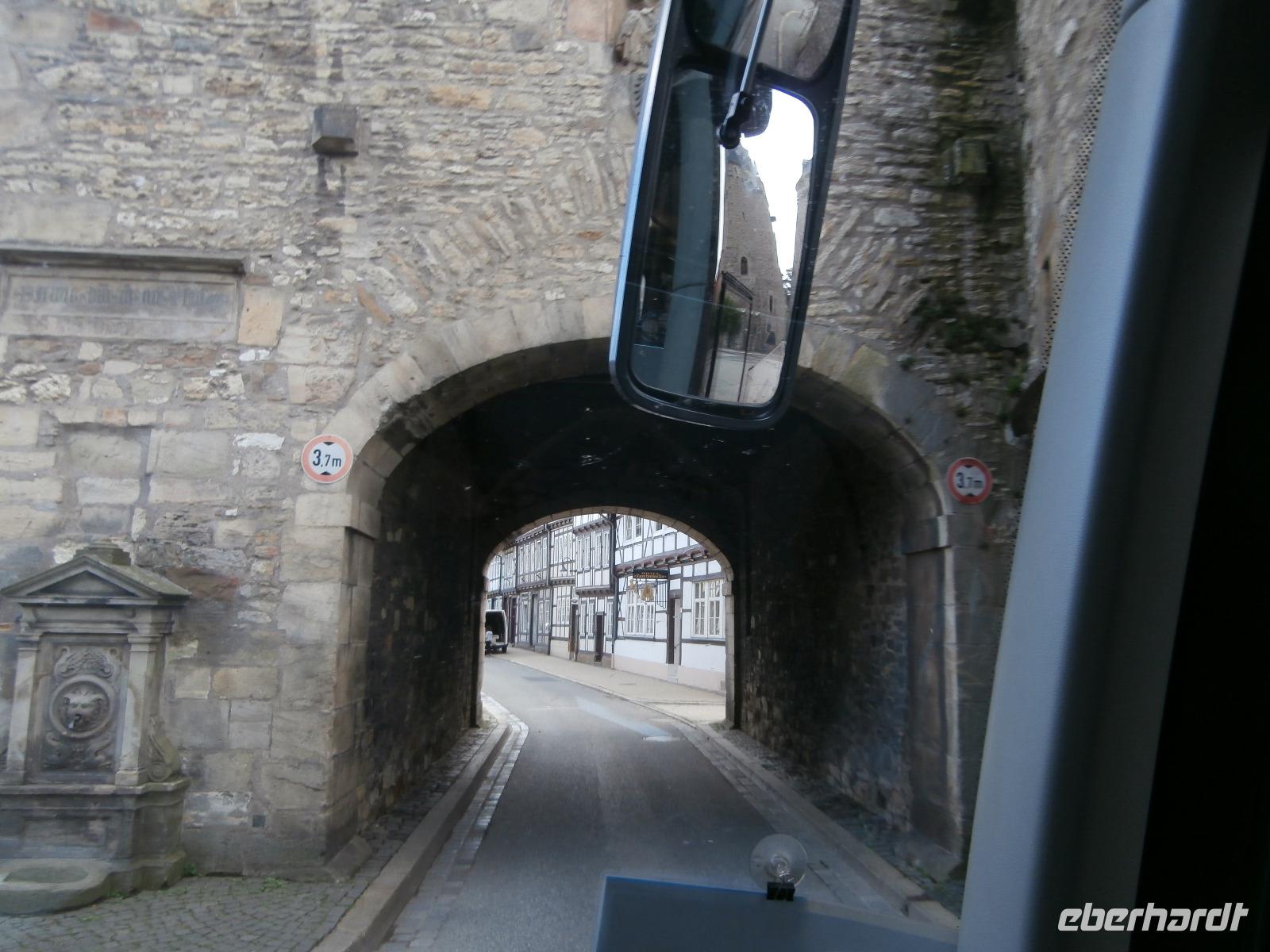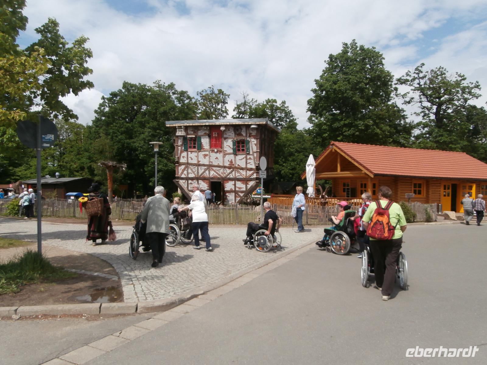 Nach einem ausgiebigen Frühstück verladen wir unsere Rollis wieder in den Bus und starten bei Sonne und angenehmen Temperaturen zur Rundfahrt durch den Harz. Erste Station ist unser Aufenthalt in Wernigerode. Diese lebendige Stadt am nördlichen Harz Rand wird überragt von einem Märchenschloss und blickt auf eine reiche, historische Zeit zurück. Wir bestaunen das spätgotische Rathaus, es ist mit seinem dekorativen Fachwerk und Fassadenschmuck ein besonderer Blickfang und ein schöner Hintergrund für unser erstes Gruppenfoto. Wir bummeln durch diese bunte Stadt so reich an Fachwerkhäusern vom 14.-18.JH bis hin zum Kleinsten Haus auf der Kochstraße 43. Dieses spätbarocke Fachwerkgebäude ist nur 2,95m breit und bis zur Dachtraufe misst es 4,20m. Vorbei am Café Wien, einem Fachwerkbau aus dem Jahre 1583 mit eigener Konditorei seit über 100 Jahren, rollen wir wieder zum Bus zurück. Über Blankenburg nach Thale mit Blick auf die Teufelsmauer, geht unsere Fahrt weiter hinauf zum legendären Hexentanzplatz, hier werden wir schon erwartet von der Hexe Abraxa. Mit ihrem Besen nimmt sie vorm Bus Aufstellung und fordert zwei Damen von uns zum Ritt auf ihrem Besen auf. Sie geht mit uns auf Zeitreise, führt uns zum Hexenring vorbei an ihrem Hexenhaus. Die imposante Figurengruppe mit Teufel und anderen Gebilden ist ein schöner Hintergrund für das nächste Gruppenbild. Hexe Abraxa erzählt uns schaurige Geschichten, lässt uns hinüber zur Rosstrappe blicken und auch zum Brocken und gibt dann für alle Reisegäste ihr Hexengesöff aus. Unsere Harzrundfahrt zurück nach Goslar führt uns südlich von Thale in den Unterharz, vorbei an Alexisbad, Hasselfelde, auf die Harzhochstraße vorbei an Braunlage, Bad Harzburg und wieder hinein nach Goslar.