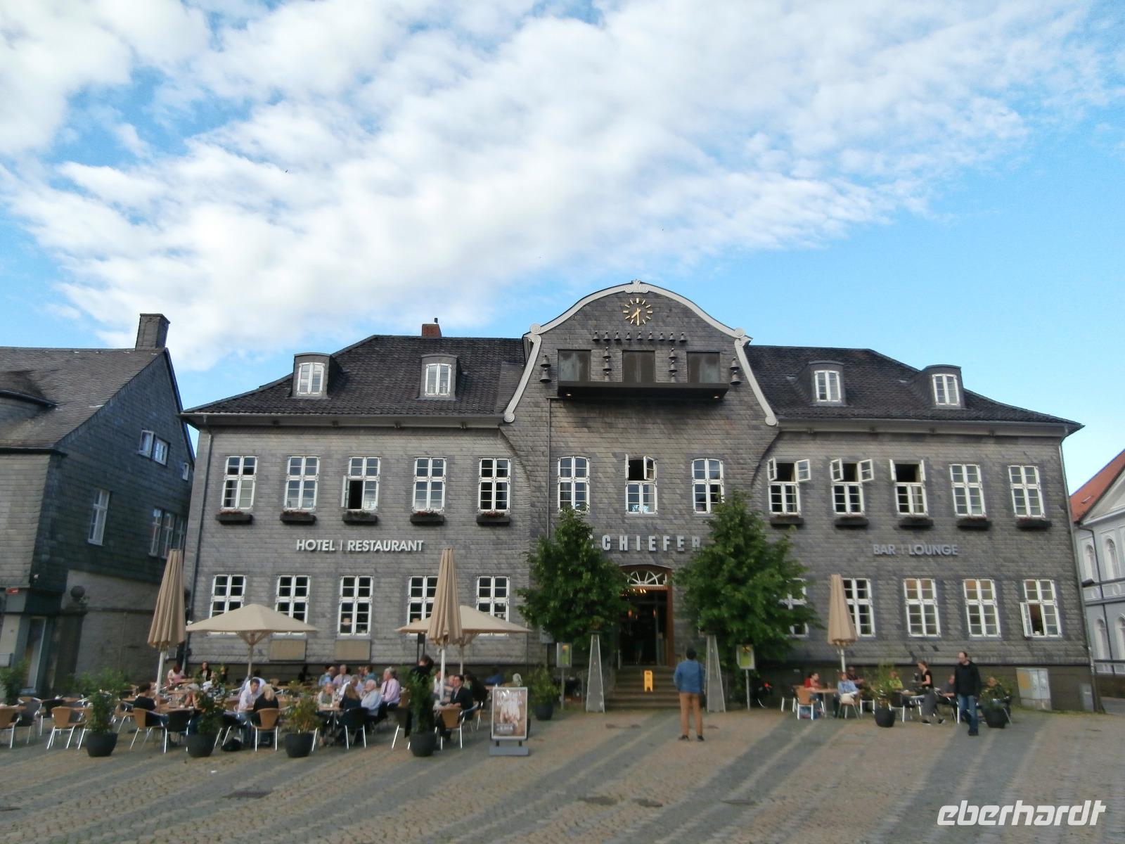 Heute früh müssen wir mit Regen und trüben Wetteraussichten klar kommen. Frau Möller ist die Gästebetreuerin vom Schwiecheldthaus und mit ihr haben wir uns für Elf Uhr verabredet. Sie bringt uns die Geschichte ihres Hauses nahe, erzählt viel zur langen Bergbautradition hier in Goslar. Es regnet so stark, dass wir unseren gemeinsam geplanten Spaziergang für zwölf Uhr zum Glockenspiel am Marktplatz von Goslar verlegen müssen. Am Nachmittag bessert sich die Wetterlage und so ist es möglich, fünfzehn Uhr dem Schauspiel bei zu wohnen. Am Abend treffen wir uns wieder zum leckeren 3-Gang Menü.