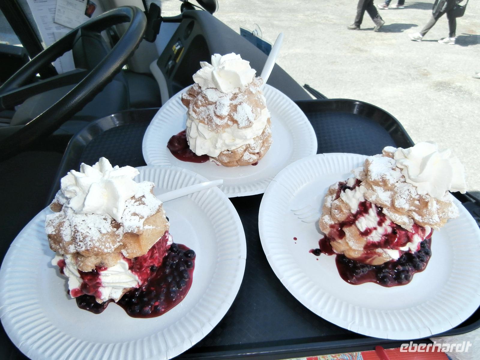 Unsere Abfahrt ist heute Morgen gefährdet, Gewitter und Starkregen bremsen uns aus. Doch unser Stoßgebet gen Himmel findet Gehör. Wir können fast trocken unsere Rollis einladen. Unterwegs ergießt sich wieder Starkregen über uns. Als wir in der Köhlerhütte ankommen, hört es aber auf und sogar die Sonne lässt sich blicken. Der Harz ist über viele Jahrhunderte vom Bergbau geprägt, schon im Jahre 968 begann der Bergbau am Rammelsberg bei Goslar. Uns erklärt der Köhler der Hütte am Stemberg, welche Bedeutung der Holzkohle zukommt, sie wird nicht nur zum Grillen gebraucht. Die Industrie setzt die Holzkohle als Kohlefilter ein. Neben Erklärungen und Anschauungsobjekten vor Ort in der Harzköhlerei gibt es für uns in der Köhlerhütte Kesselgulasch und dazu lassen wir uns auch ein Getränk servieren. Am Nachmittag legen wir an der Okertalsperre beim Windbeutelkönig eine Pause ein. Mit Heidelbeeren und Kirschen serviert schmeckt so ein Windbeutel spitze. Auch einen herzhaften Windbeutel kann man bekommen, z.B. mit Lachs oder auch Schinken. Im Bus gibt es dazu noch Kaffee und Cappuccino. Nach dem Abendessen haben wir eine Verabredung im Brauhaus von Goslar, hier machen wir eine Gose Verkostung, eine regionale Spezialität. Wir sitzen in angenehmer Runde draußen beieinander und haben viel Spaß, ein schöner Abschluss unserer Reise.