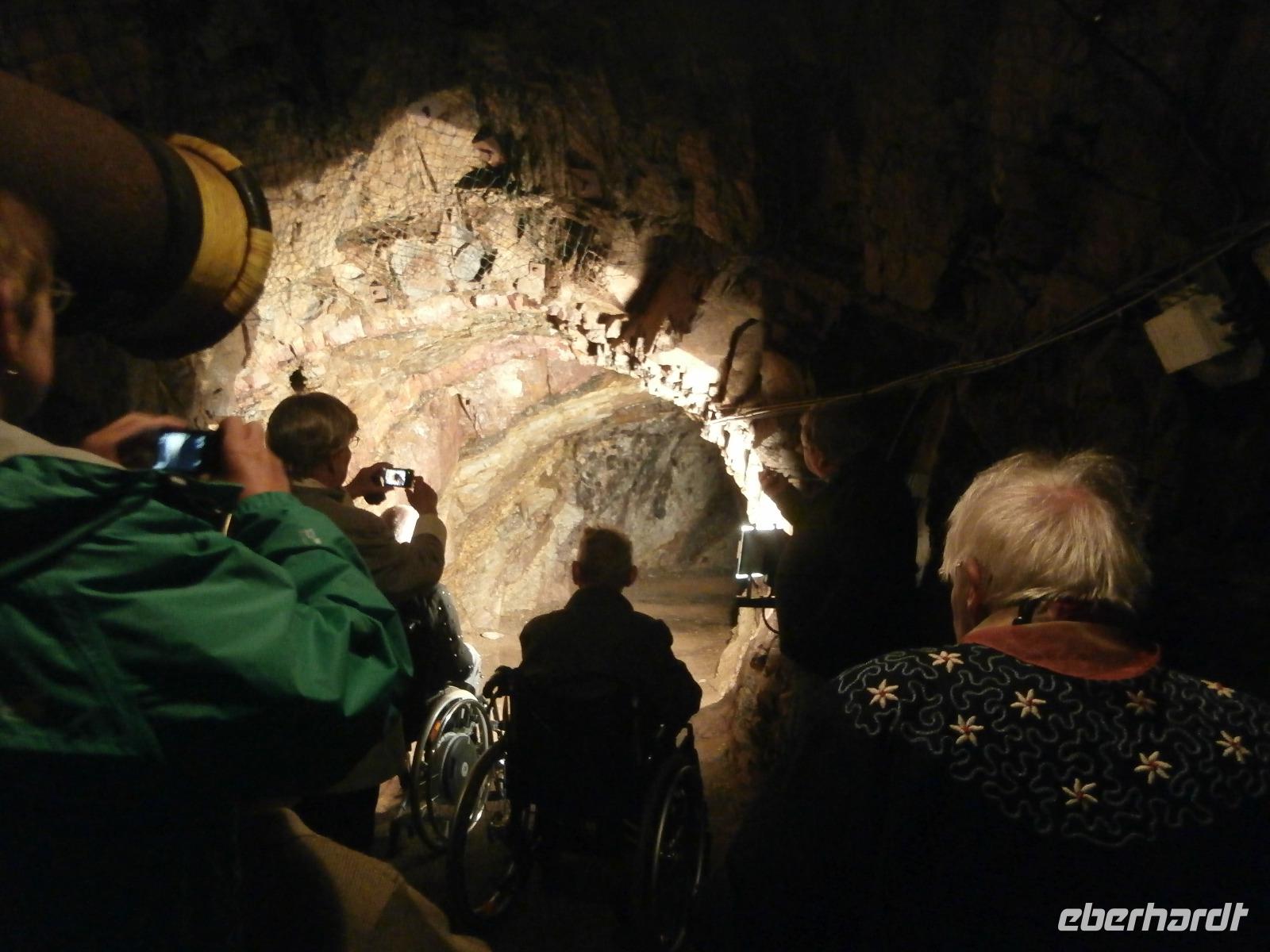 Heute heißt es Abschied nehmen, Koffer und Rollis verladen und Abfahrt nach Büchenberg in der Nähe von Elbingerode im Harz. Im Schaubergwerk werden wir schon erwartet. Mit einem Schräglift fahren wir hinunter ins Bergwerk, wo man unter schweren Bedingungen das Eisenerz abgebaut hat. In 50m Tiefe werden wir von einem Bergwerksführer, der ein wahres Original dieser Einrichtung ist, geführt. Mit viel Mühe rollen wir über die Strecke und bekommen vom Führer das ein oder andere Arbeitsinstrument laut vorgeführt. Nach der Auffahrt sind wir alle froh, wieder mit Wärme und Tageslicht versorgt zu sein. Jens, unser Busfahrer, hat derweil den Grill angeworfen und serviert uns lecker Rostbratwurst. Ein großes Dankeschön an die 2 Herren in Büchenberg für die unkomplizierte Mithilfe. Ein letztes „Glück Auf" und wir setzen unsere Fahrt gen Heimat fort. Einige Unfälle und Sperrungen bringen uns dann noch viel Zeitverzögerung ein, wir sind alle gut hach hause gekommen.