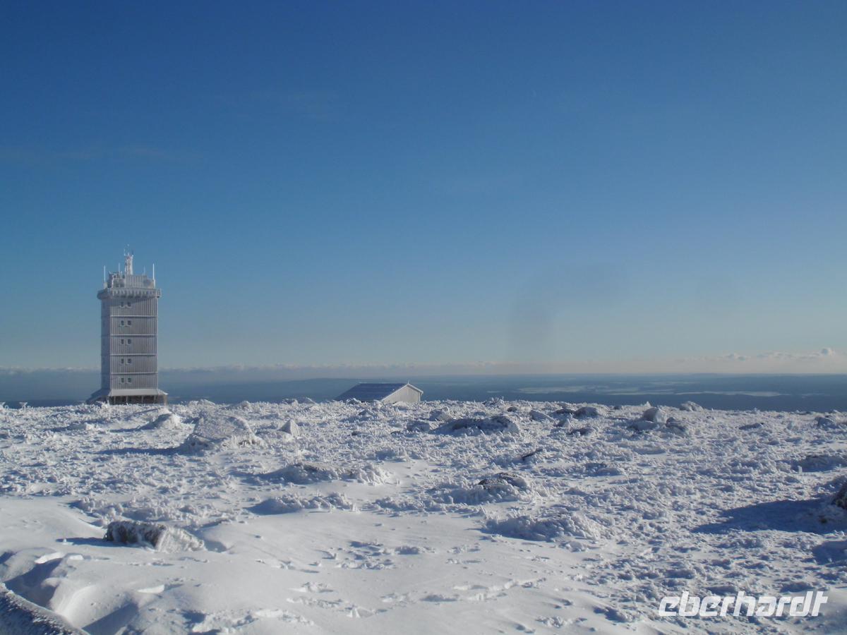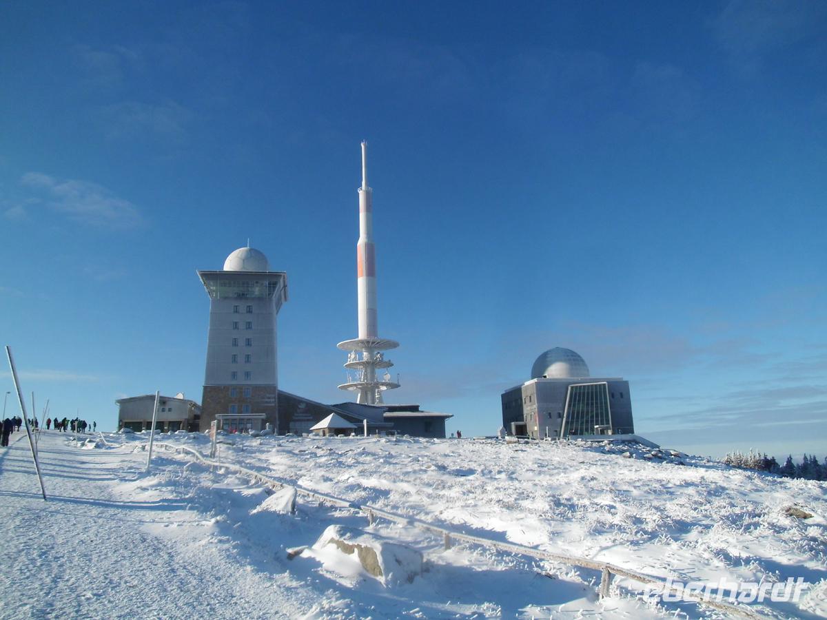 Am Bahnhof ist die Parksituation für Reisebusse optimal. Die besonderen klimatischen Bedingungen des Brockens haben zur Folge dass es 306 Nebeltage, sowie über 176 Tage mit Eis und Schnee dort pro Jahr gibt. Tage mit Sonnenschein und Fernsicht sind auf dem Brocken sehr selten. Doch heute soll dies der Fall sein. Wir haben unendliches Glück.
