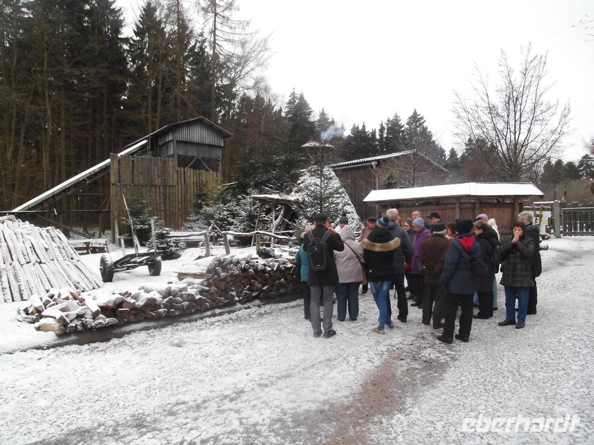 Das Museum Harzköhlerei ist im Wesentlichen ein Freilichtmuseum mit einem kleinen Ausstellungsraum am Ende, und einem Verkaufsraum am Eingang. Trotz der Kälte ist es aber sehr informativ und gut gestaltet. Wir erfahren sehr viel über diesen ehemals so wichtigen Wirtschaftszweig im Harz, ohne den die Erzverhüttung nicht möglich gewesen wäre.