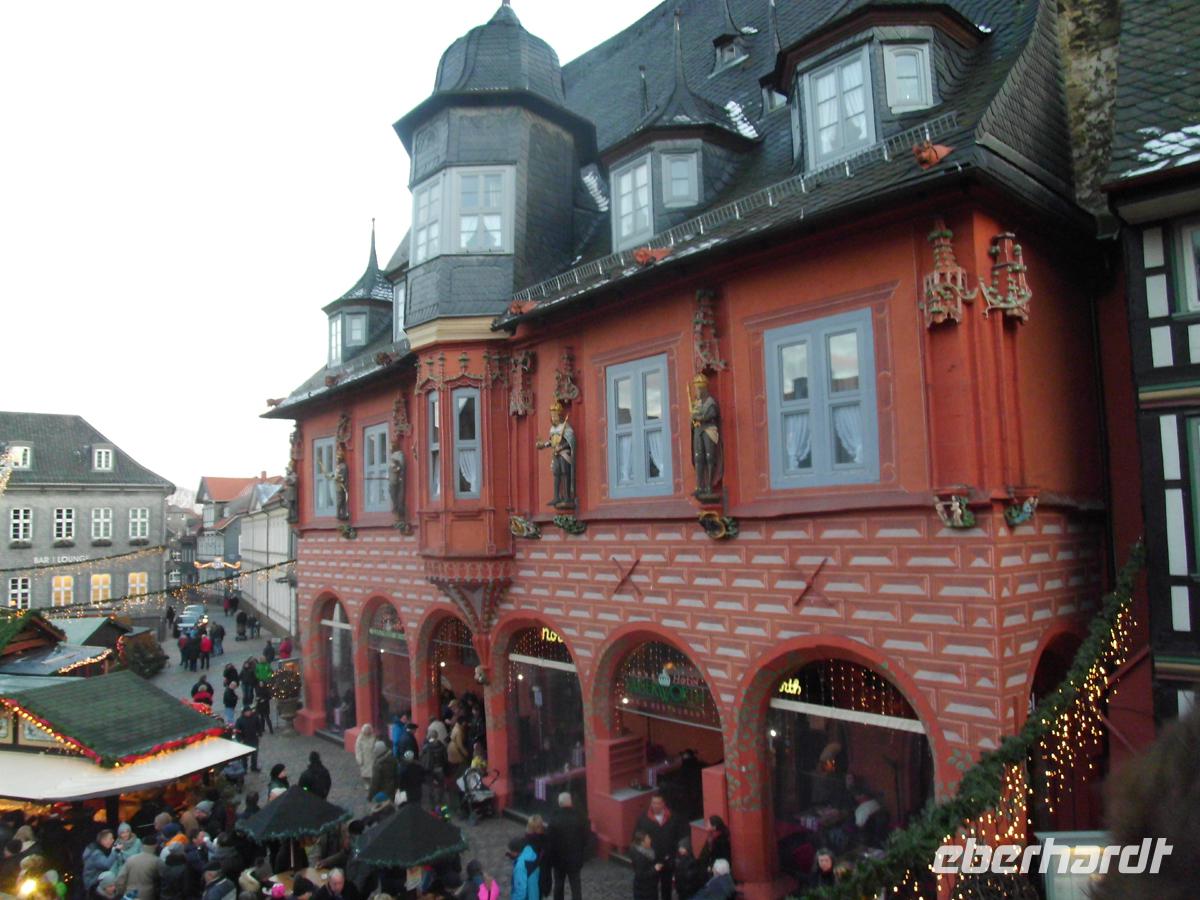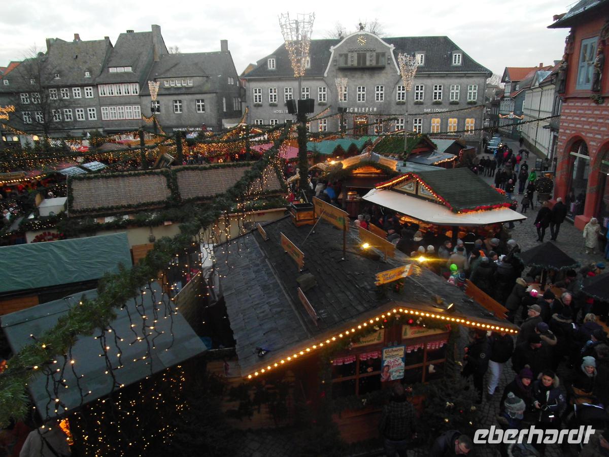 Bei heißen Getränken ist die Kälte nur noch halb so schlimm. Vielleicht sieht man ja das sagenhafte Brockengespenst, eine Nebelerscheinung, von der schon Goethe berichtet. Runter vom Brocken geht es schneller, und der Bus holt uns schon in Drei Annen Hohne ab. So haben wir Zeit gespart können noch den Weihnachtsmarkt in Goslar beuchen. Wir parken direkt unter der Kaiserpfalz und lassen die Stimmung zwischen uralten Fachwerkhäusern auf uns wirken. Bei einem leckeren Abendmenü beschließen wir den Tag in unserem Schloßhotel.