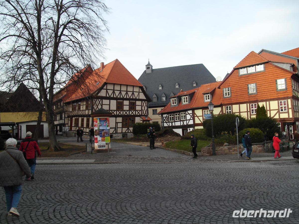 Über den Marktplatz gelangen wir auf den Kornmarkt, durch die Jüdengasse in die Hölle. Durch den schmalen Schuhhof geht es über den Kirchhof der Marktkirche zu einem der ältesten Gebäude der Stadt, dem Ständerbau in der Wordgasse aus der 1. Hälfte des 14. Jh. 2 Stunden sind schnell vorbei. Auch wegen der Besichtigungen der Marktkirche und St. Blasius. Nun reisen wir weiter nach Meisdorf zum Hotel. In dem schönen umgebauten Schlossensemble wird in den nächsten Tagen unser Domizil sein.