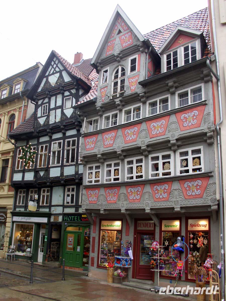 Über die mächtige Staumauer der Rappbodetalsperre reisen wir weiter nach Wernigerode. Optional ist ein Stadtrundgang mit dem Reiseleiter oder das Erkunden der Stadt auf eigene Faust geplant. Die meisten Gäste schließen sich mir an.Wir besuchen das kleinste Haus der Stadt und gehen über den oberen Pfarrkirchhof zum Marktplatz und wieder durch die Breite Strasse zurück zum Bus. Vorbei an Fachwerkhäusern mit reichem Schnitzwerk. Ich gebe wichtige Dinge zur Stadtgeschichte und zum Fachwerkbau ab, sowie zu einem der schönsten Rathäuser Deutschlands. In Wernigerode treffen niedersächsischer und hessisch-fränkischer Fachwerkstil wie selten sonst aufeinander.Gerne werden die Gäste auf Dinge aufmerksam gemacht, die man leicht übersieht. So auch auf steinerne Brandmauern zwischen den Fachwerkhäusern. Sie sind oft viel älter als die Häuser zwischen ihnen, weil nur sie selbst die vielen Stadtbrände überdauert haben, deren Ausbreitung sie eigentlich verhindern sollten.Hoch über der Stadt sehen wir das märchenhafte Schloss der Grafen zu Stolberg-Wernigerode.15 Uhr treffen sich alle zum Kaffeetrinken im Restaurant.Der Weihnachtsmann bringt Geschenke für die Kinder unrter den Gästen und eine Geigerin fiedelt Weihnachtslieder!