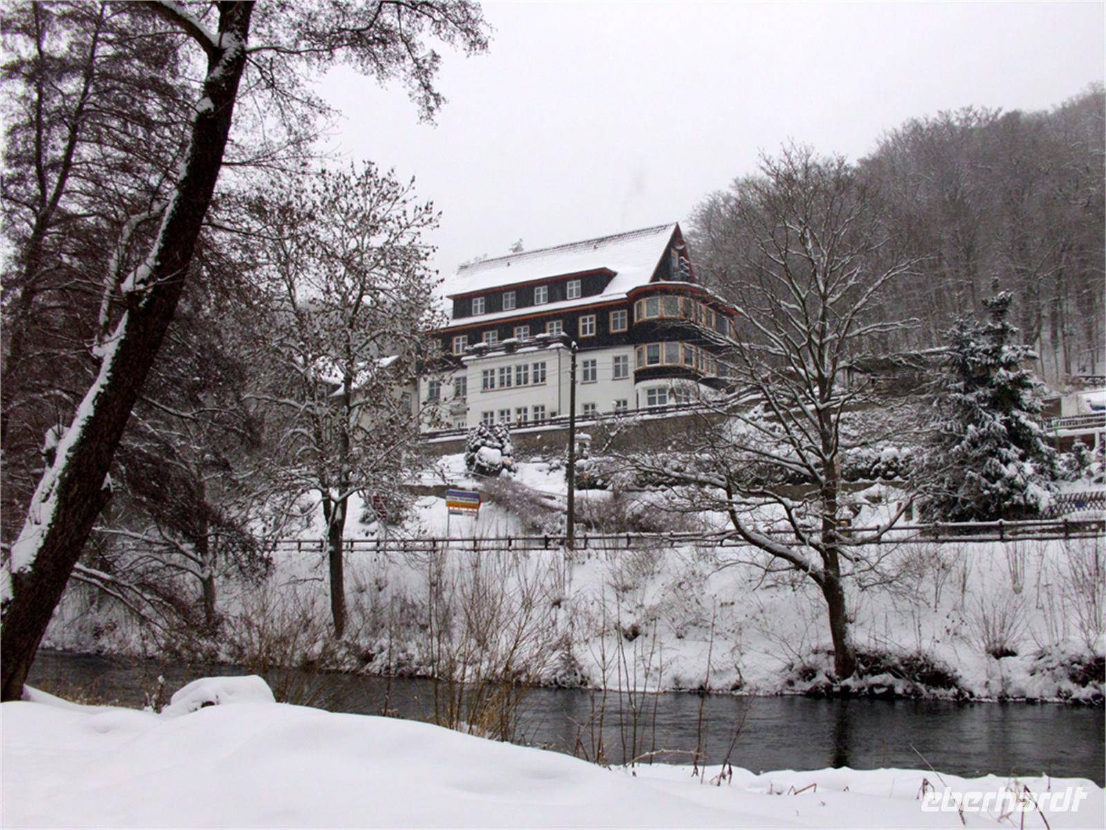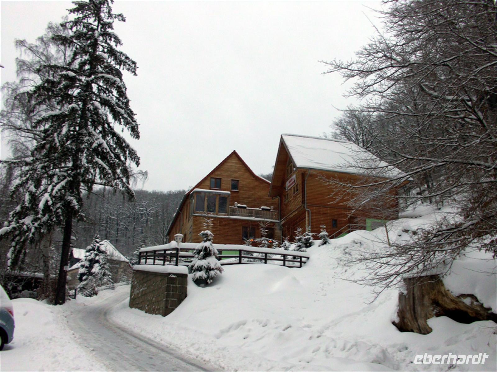 Wir reisen nun nach Altenbrak zum Hotel. Nach einer dreiviertel Stunde sind wir dort. Das Dorf im engen Bodetal ist langgestreckt. Die Häuser liegen meist am Hang, mit unverbaubarem Ausblick auf die Bode. So auch das Hotel, was einen gepflegten Eindruck macht. Es besteht im Grunde aus 2 Häusern, von denen das Berghotel noch 150 m den Hang hinaufliegt, und in dem sich auch ein großer Sauna- und Wellnessbereich befindet.