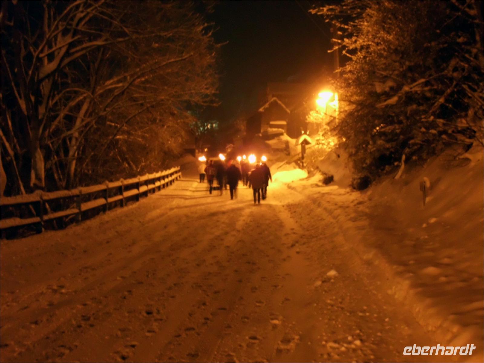Nach dem opulenten Weihnachtsmahl ist es den allen frei gestellt, den Abend zu gestalten. Optional ist ein Fackelzug zur Kirche und zum Gottesdienst angedacht. Die meisten Gäste machen mit. Die anderen gehen auf ihre Zimmer, verbringen noch ein wenig Zeit im Restaurant, oder machen einen Verdauungsspaziergang durchs lang gestreckte Dorf.