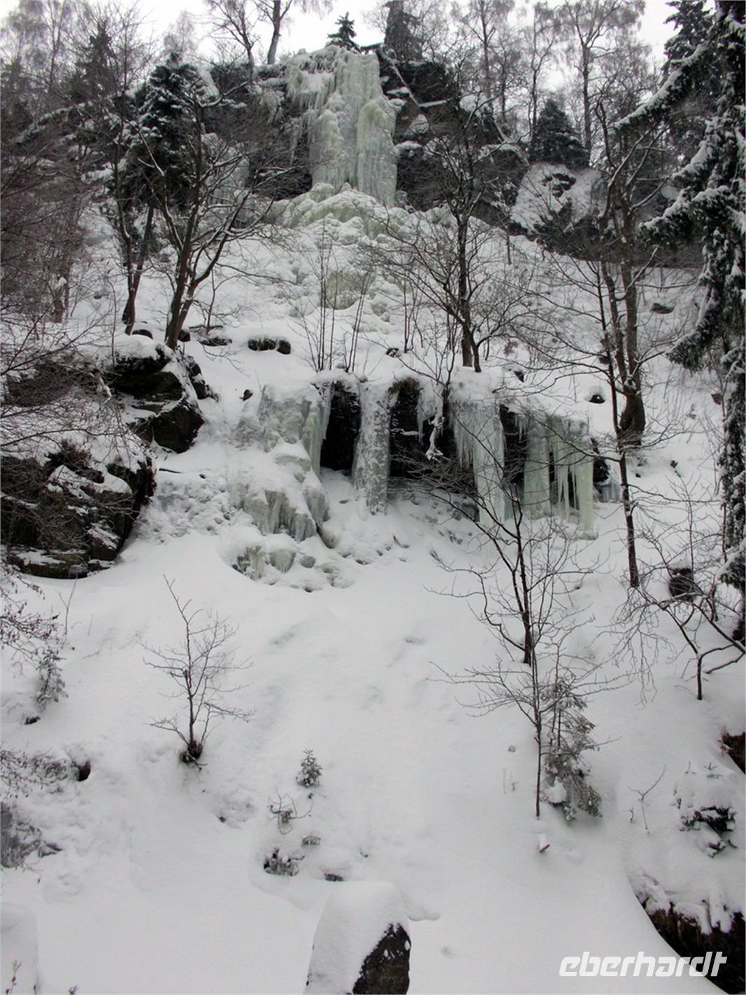 Nach Hahnenklee machten wir einen nicht geplanten Abstecher an die Okertalsperre mit Photostop am Romkerhaller Wasserfall, der mit 64 m der höchste des Harzes ist. Er ist total vereist und gibt ein sehr schönes Photomotiv ab.