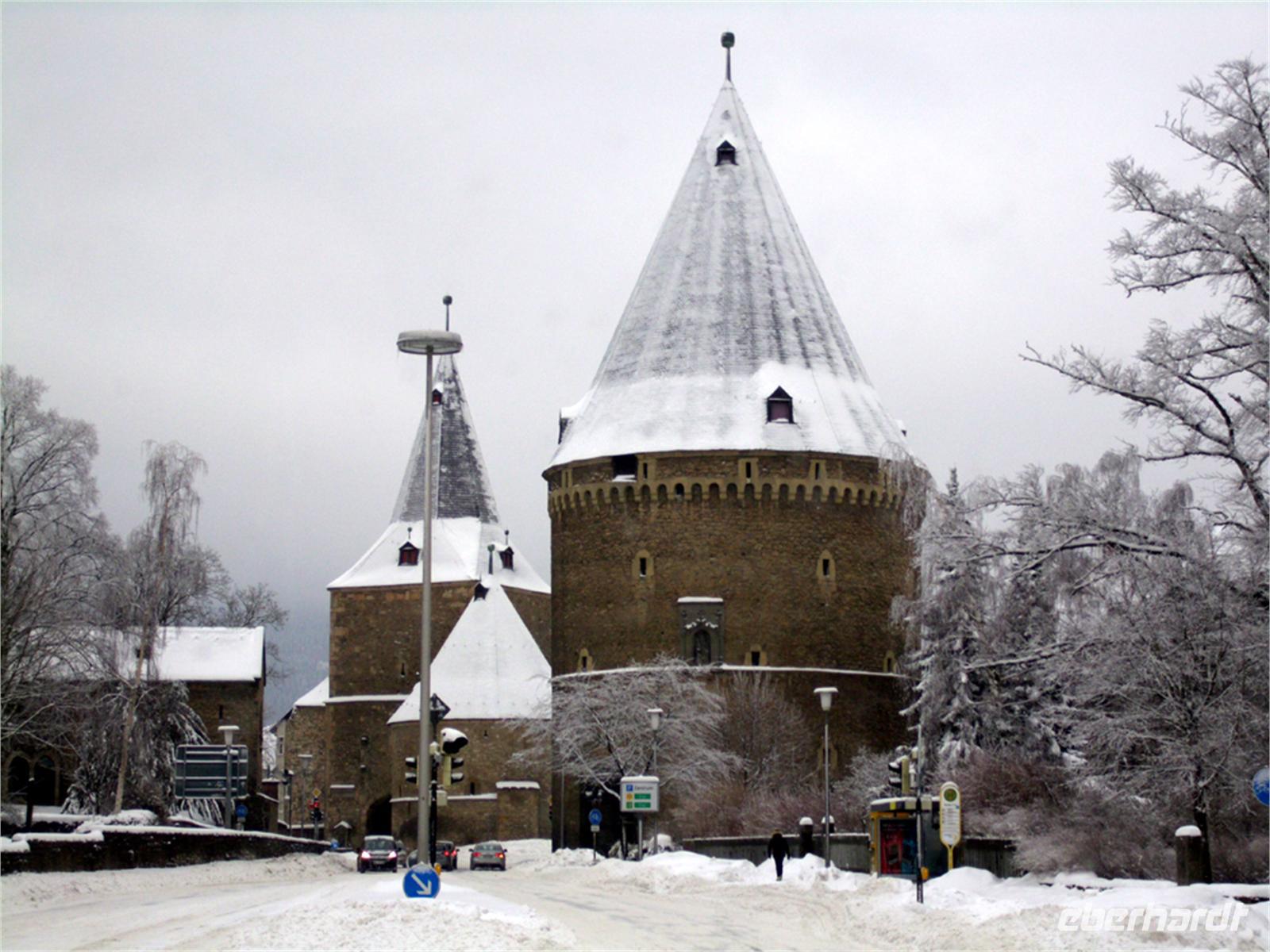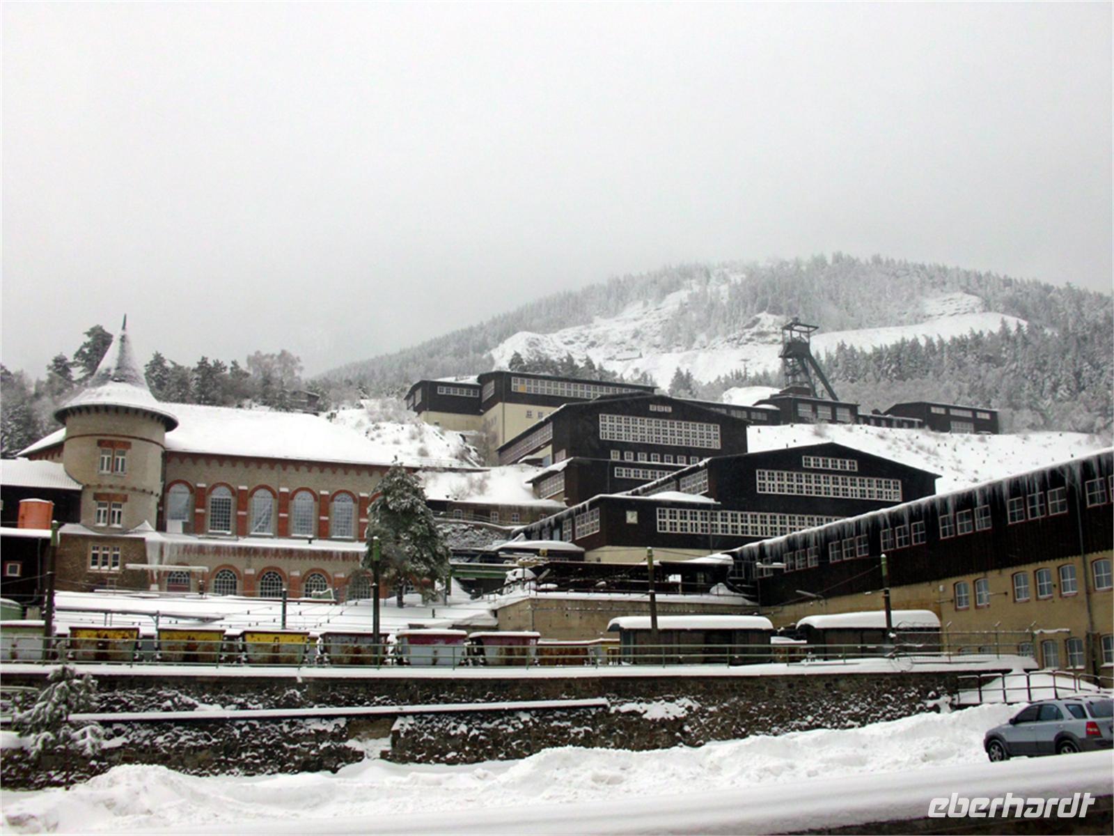 Nach dem Frühstück geht es gegen 9 Uhr mit dem Bus in Richtung Goslar. Es ist strahlender Sonnenschein und der verschneite Winterwald begeistert jeden. Wir wählen die Route quer durch den Oberharz über Braunlage. Unterwegs erläutere ich das Harzer Wasserregal mit den vielen Stauteichen, sowie den Zusammenhang mit dem Bergbau. In den Städten und Dörfern liegen die Schneeberge zum Teil so hoch, dass zwei Autos auf den Strassen nebeneinander keinen Platz mehr haben.