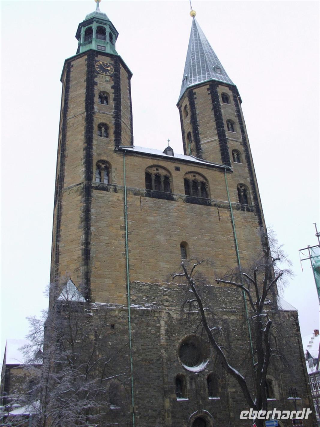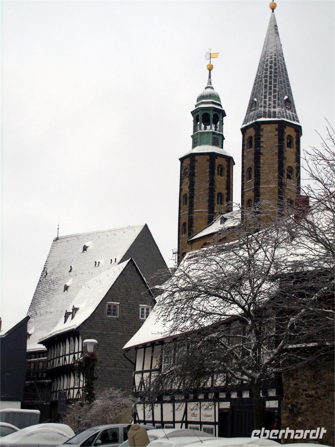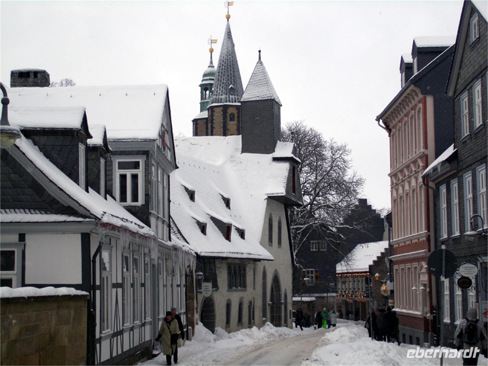 Sie führt uns zunächst zum Rammelsberg, aus dessen silbernen Inhalt die Welterbestadt Goslar ihren Reichtum schöpfte. Zurück geht die Fahrt um die mächtigen Wallanlagen mit der größten Torburg Deutschlands, dem Breiten Tor. Durch ein Jugendstilviertel gelangen wir wieder in die Altstadt und beginnen den Rundgang an der Pfalz. Eine Lieblingspfalz der Salier und Stauffer. Allein Kaiser Barbarossa war acht mal hier. Es geht durch enge Gassen an der Gose entlang. Mit Schiefer behangene Häuser wechseln sich mit prächtigstem Fachwerk ab. Ich gewinne den Eindruck, der Guide könnte zu jedem Haus eine Stunde lang erzählen und schaue ab und zu demonstrativ auf die Uhr.