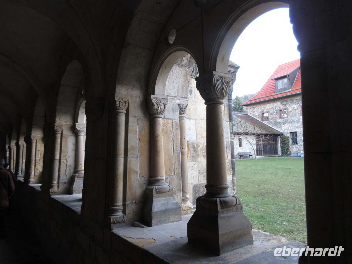 Heute Nachmittag steht eines der romanischen Highlights des Harzkreises auf dem Programm. Die Stiftskirche von Gernrode. Schon von weitem ist die mächtige Basilika aus dem Jahre 759 zu erblicken. Ihre Ausstattung ist sensationell. Wir staunen über eine Ausmalung, die prächtiger nicht sein kann, und über eine Nachbildung des hl. Grabes mitten in der Kirche. Eine Vertreterin der Kirchengemeinde selbst erläutert uns das Bauwerk, bei deren prächtiger Ausgestaltung Kaiserin Theophanou, die Gemahlin von Kaiser Otto II. persönlich ihre Hand im Spiel gehabt haben soll. Schon nach kurzer Zeit gehörte Gernrode zu den reichsten und mächtigsten Damenstiften des Reiches. Und zu guter letzt schließ uns unsere Gästeführerin auch noch den Kreuzgang auf, von dem noch ein kleiner Teil erhalten ist. Hier können wir durch ein kleines Fenster in das Innere des hl. Grabes schauen.