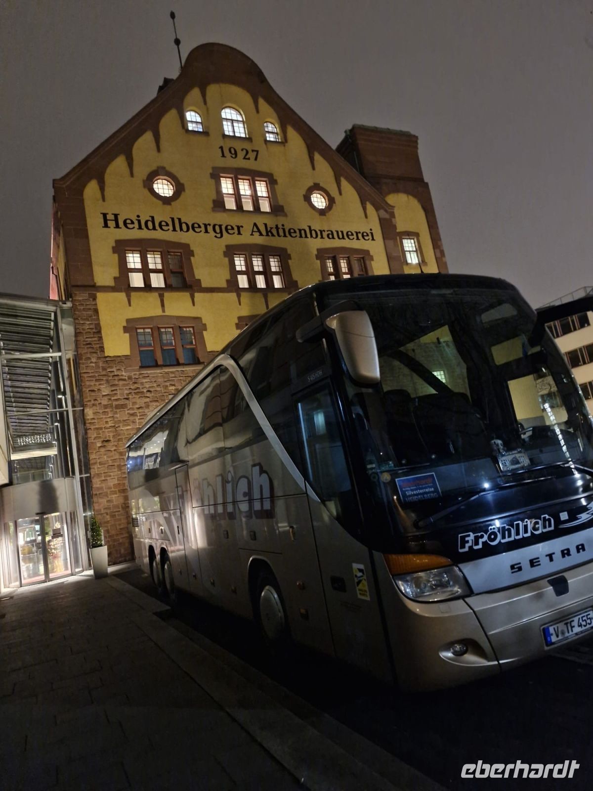 Gegen 18:30 Uhr ist dann auch die Ruhepause für unseren Busfahrer Jens beendet und wir fahren zum Schlosshotel Heidelberg, denn dort sind im Spiegelsaal der "Molkenkur Heidelberg" für uns ab 20:00 Uhr Tische für die Silvestergala reserviert.