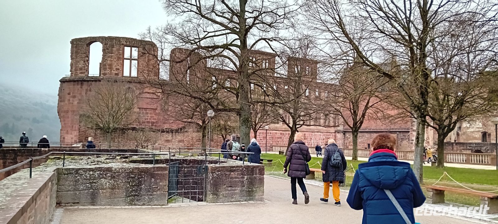 Mit der Bergbahn gings hoch zum Wahrzeichen Heidelbergs, der Burgruine, die auch ein festes Element der Heidelberger Dichtung ist. Zentral für die Wahrnehmung Heidelbergs als "romantische Stadt", wie sie z. B. auch von Friedrich Hölderlin oder Joseph von Eichendorff beschrieben wurde.