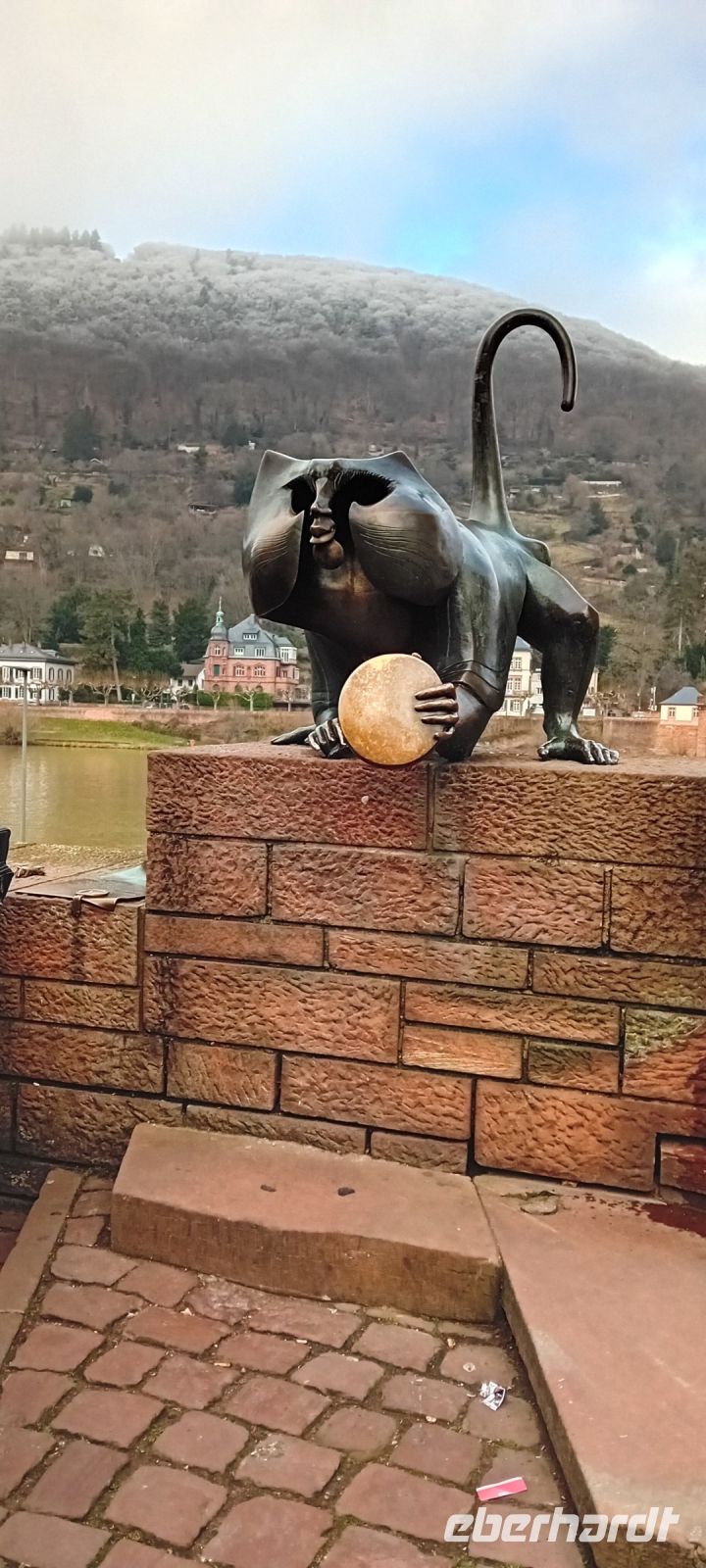 Beim Brückenaffen an der Alten Brücke verabschieden wir uns von Marcella und können nun die Altstadt von Heidelberg auf eigene Faust erkunden.