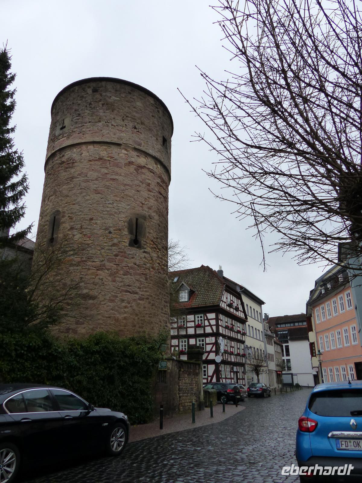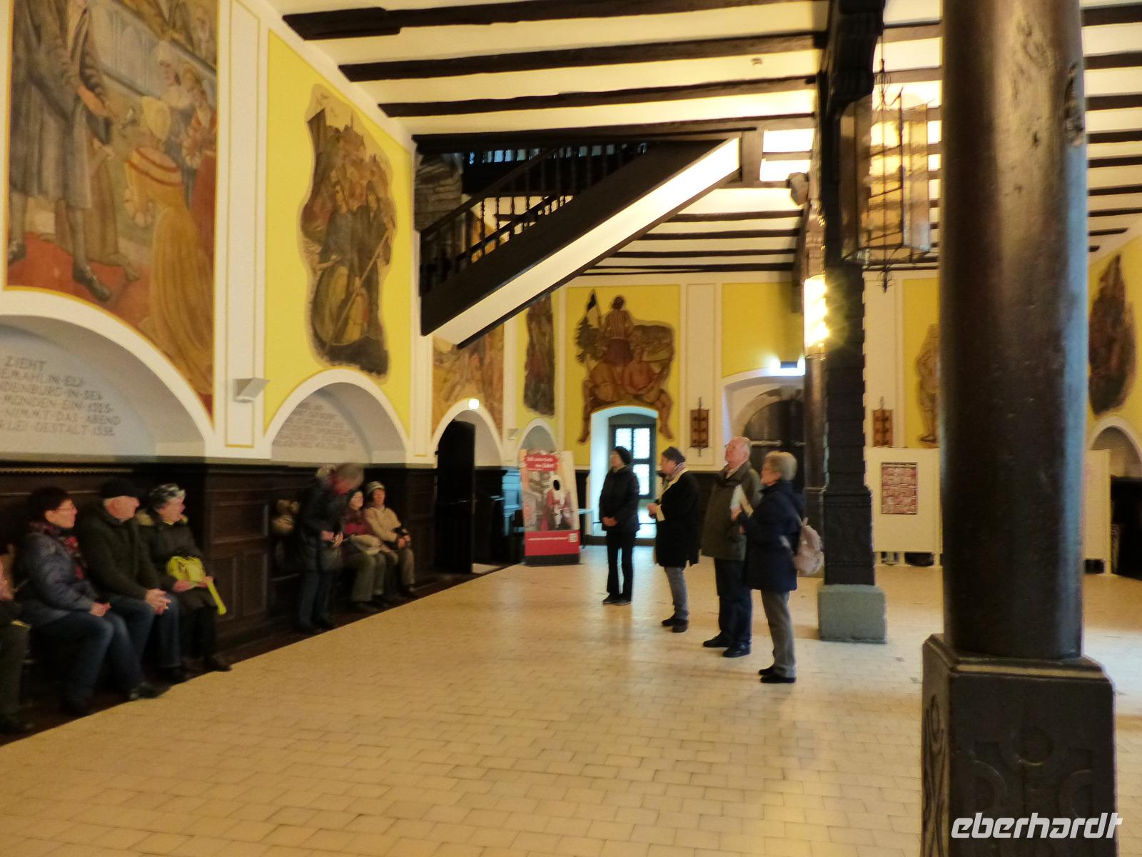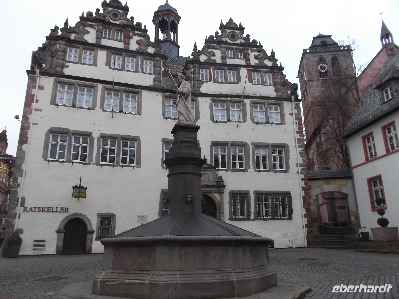 Von Fraurombach ging es nach Bad Hersfeld, dessen hübschen Stadtkern mit Stadtbefestigung und zahlreichen Fachwerkhäusern wir bei einem Rundgang kennenlernten. Bemerkenswert war zunächst das Rathaus im Stil der Weserrenaissance, an dem sich viele der Geschichten rund um die alte Stadt und die Konfrontation mit der im Ort gelegenen ehemaligen Reichsabtei Hersfeld ablesen lassen.