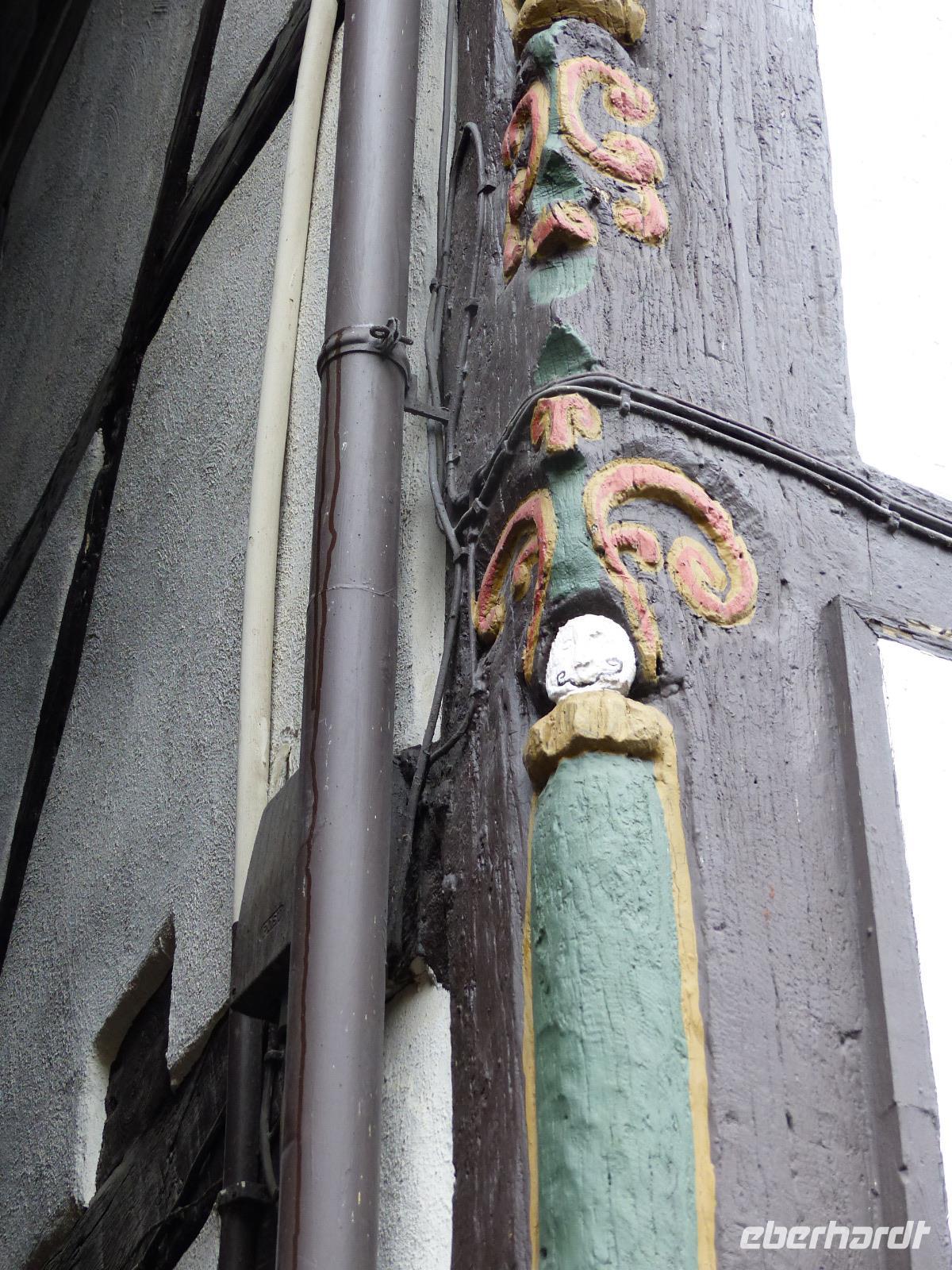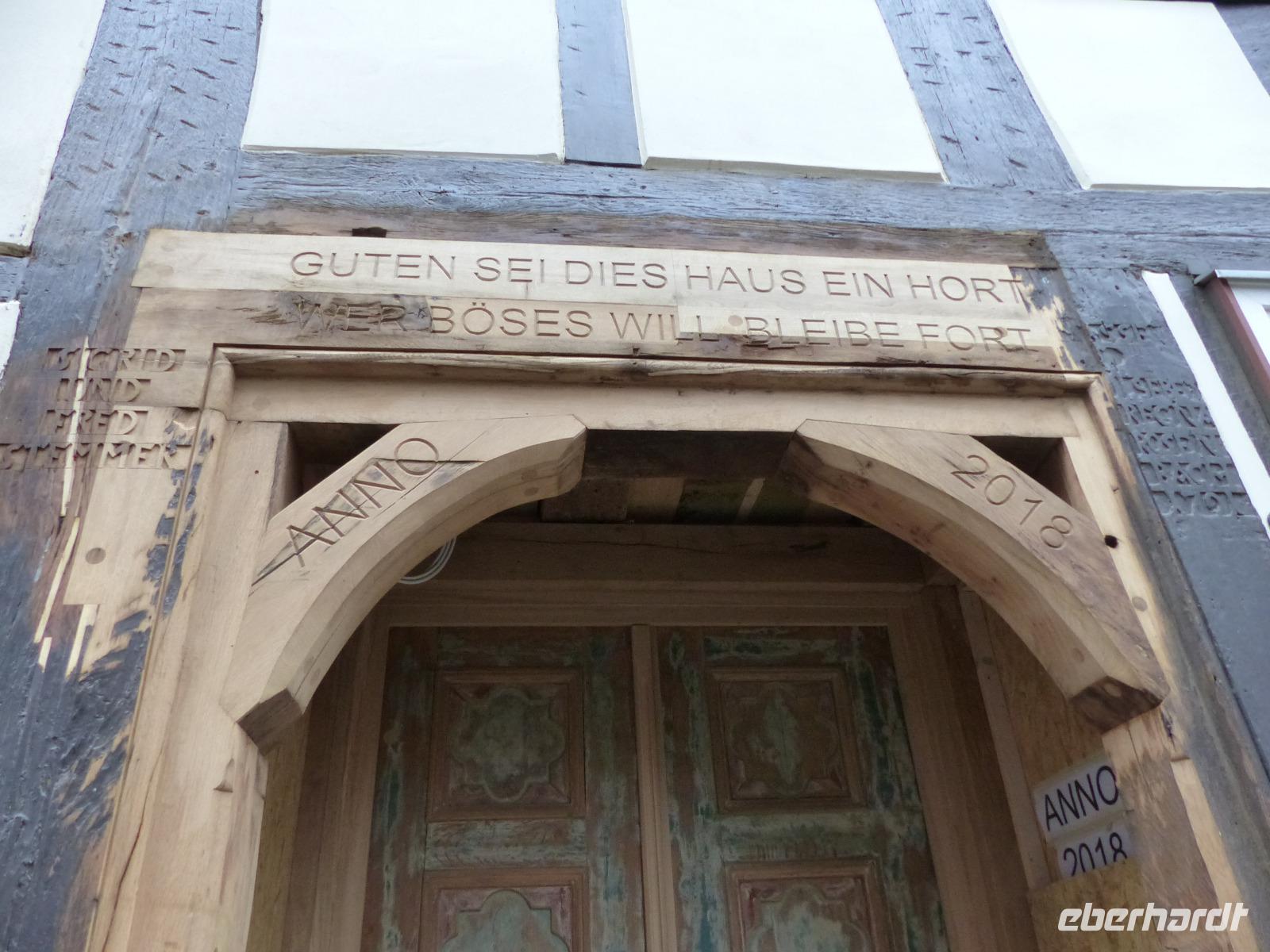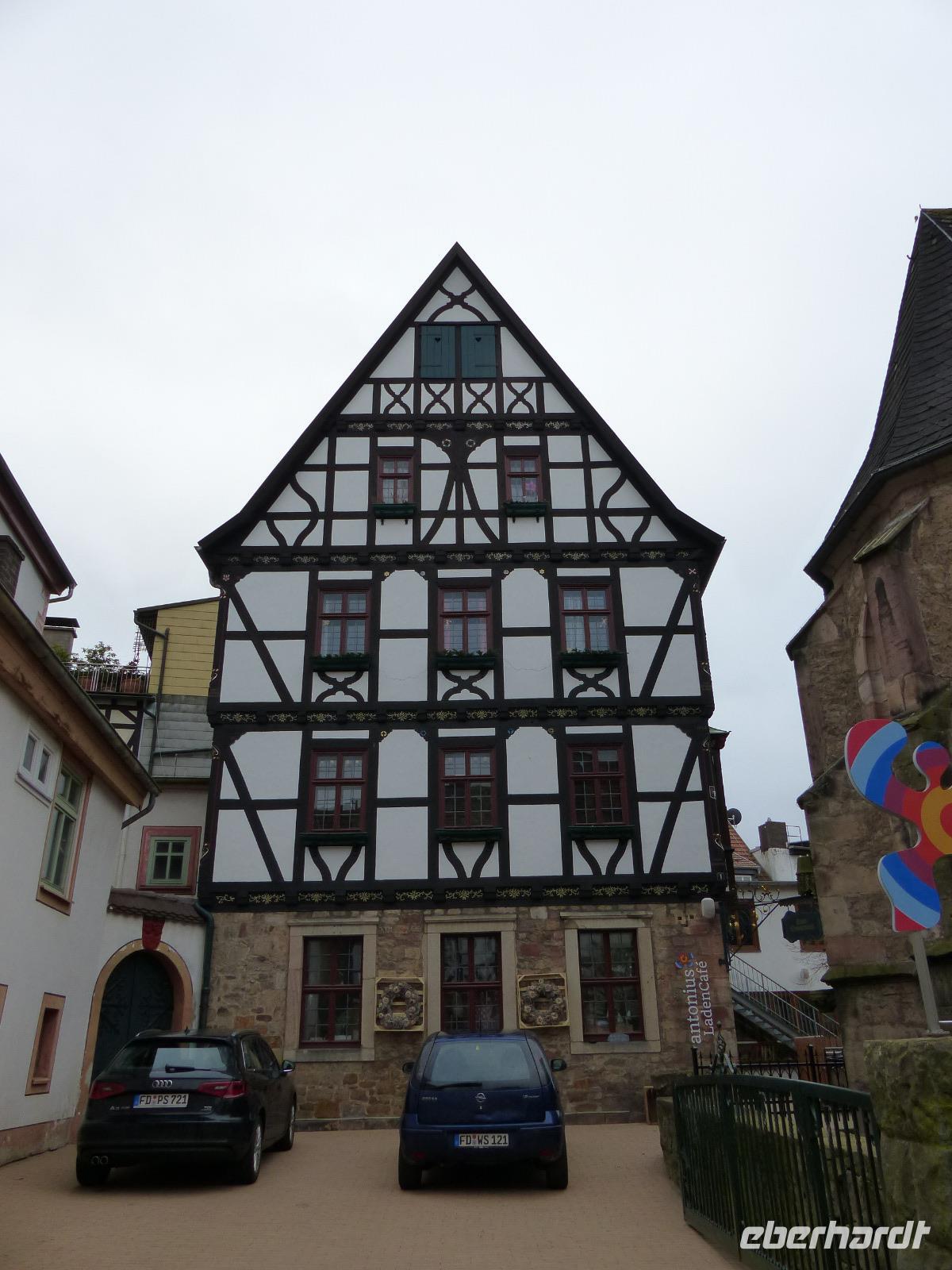 Von Fraurombach ging es nach Bad Hersfeld, dessen hübschen Stadtkern mit Stadtbefestigung und zahlreichen Fachwerkhäusern wir bei einem Rundgang kennenlernten. Bemerkenswert war zunächst das Rathaus im Stil der Weserrenaissance, an dem sich viele der Geschichten rund um die alte Stadt und die Konfrontation mit der im Ort gelegenen ehemaligen Reichsabtei Hersfeld ablesen lassen.