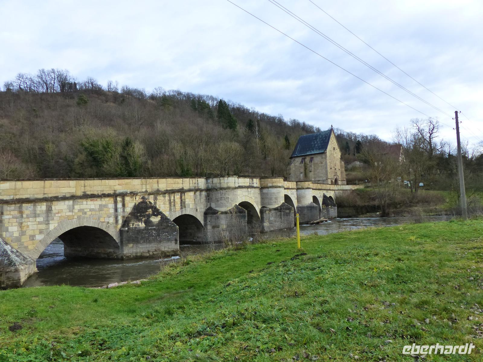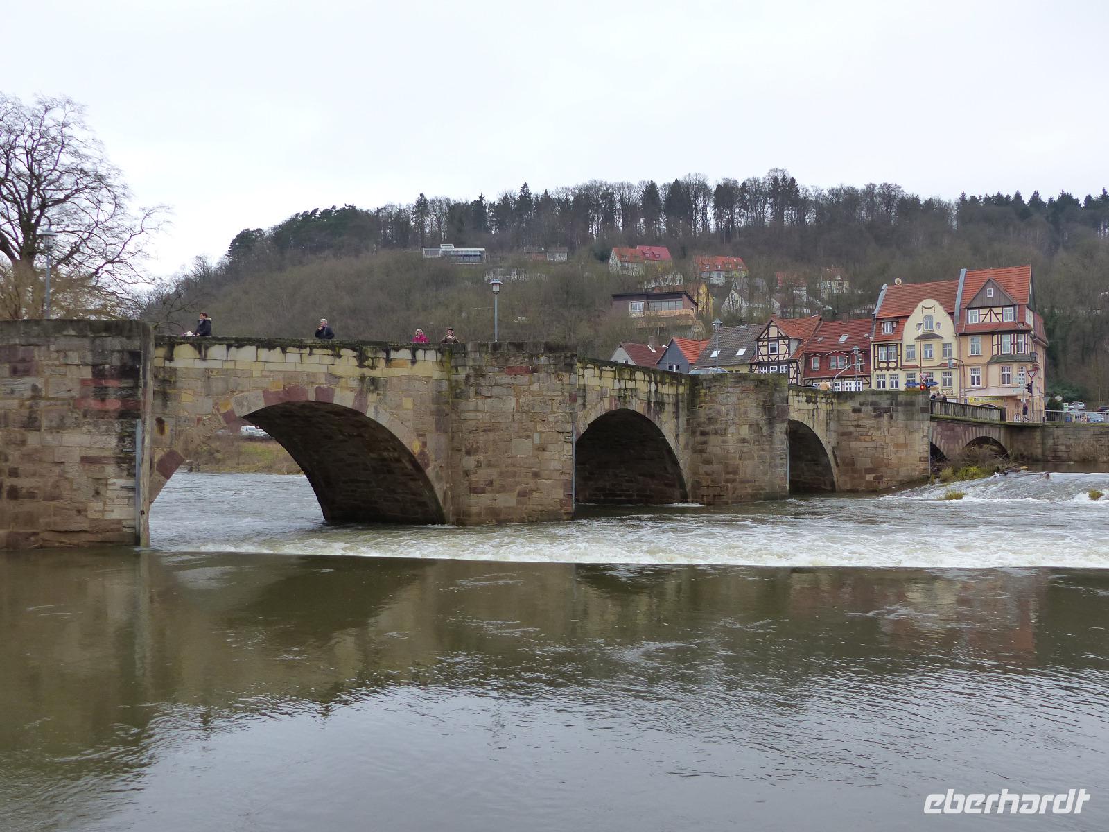 Uns interessierte jedoch ein anderes historisches Objekt. Bei einem ausgedehnten Fotostopp hatten wir Gelegenheit, eine der ältesten Steinbrücken in Europa zu bewundern: die siebenbogige Werrabrücke mit der direkt an ihr befindlichen Liboriuskapelle wurde ab 1223 errichtet und außer ihr gibt es nur noch eine Handvoll gleich alter oder älterer Steinbrücken europaweit: selbst die weltberühmte Prager Karlsbrücke ist über 100 Jahre jünger.