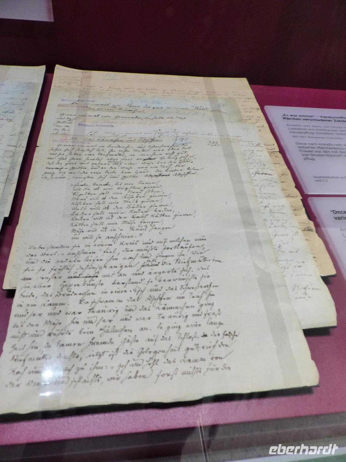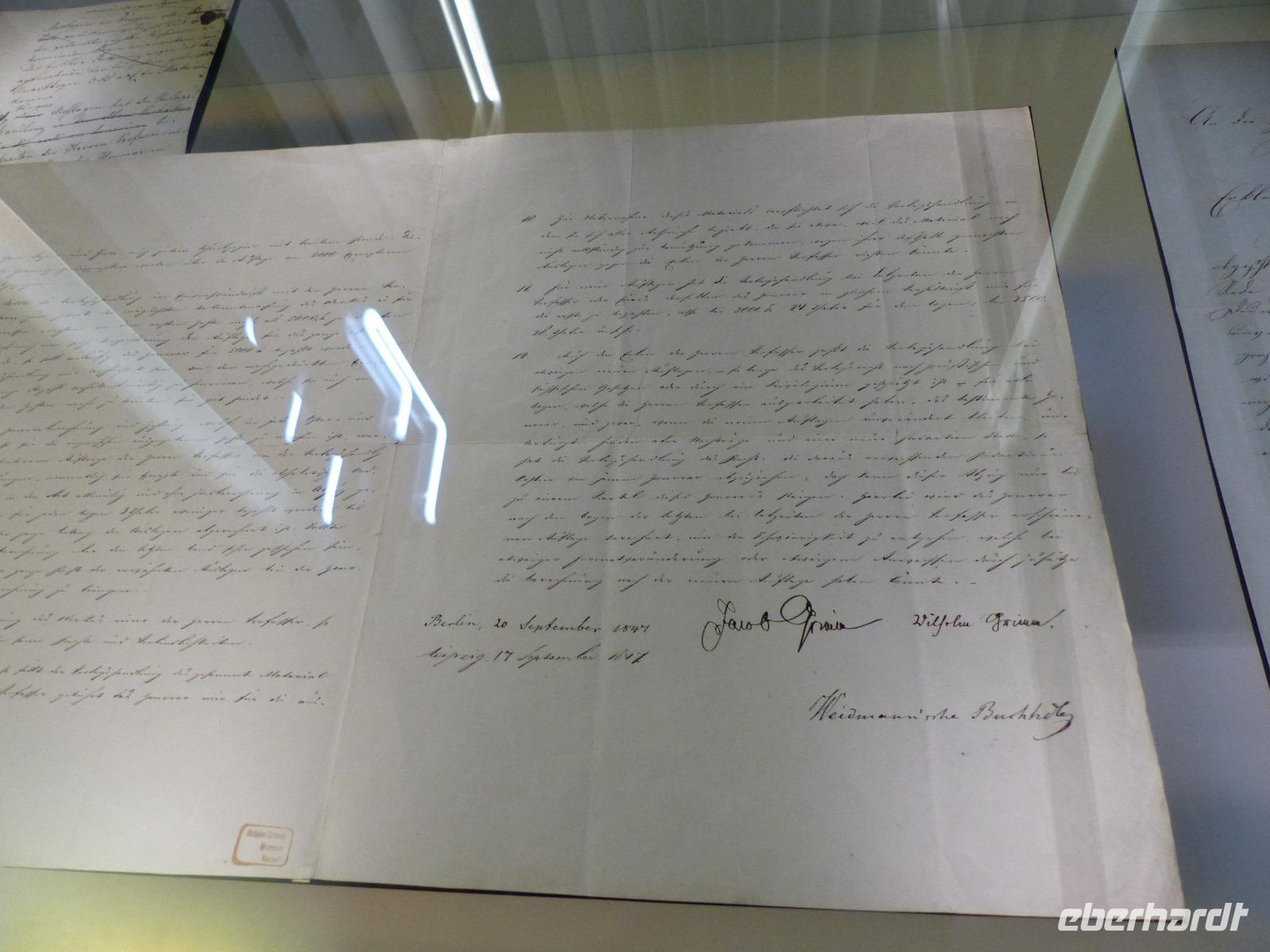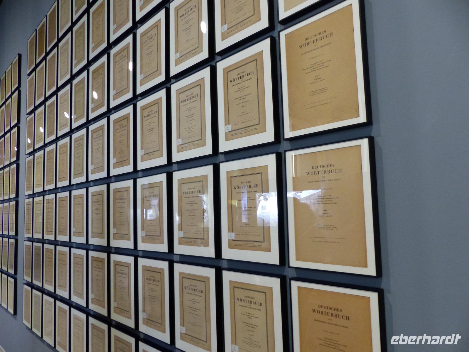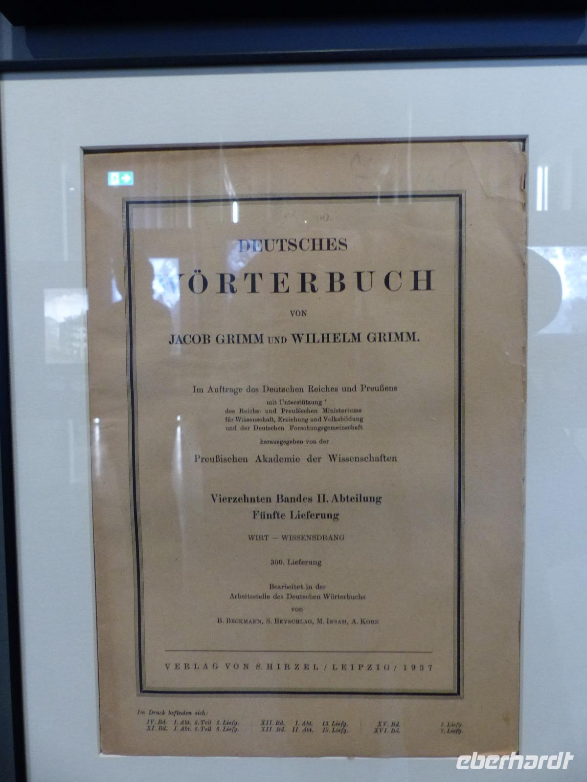 Nachmittags wurde es dann „märchenhaft", denn wir besuchten die „Grimmwelt" in Kassel. Dieses erst 2015 eröffnete moderne Ausstellungshaus beschäftigt sich ausführlich und durch Präsentation höchst interessanter, künstlerischer und aussagekräftiger Ausstellungsmethoden mit dem umfangreichen Werk der Brüder Jacob und Wilhelm Grimm. Deshalb wird die Grimmwet auch nicht als Museum bezeichnet - weil vieles erlebbar und natürlich zum „Begreifen", Teilnehmen und Mitmachen gestaltet ist. Natürlich ist ein wesentlicher Teil des Hauses dem UNESCO-Welterbe Kinder- und Hausmärchen gewidmet. Doch bei uns fast nur als „Märchen-Grimms" bekannt, haben sich die Brüder Zeit ihres Lebens intensiv mit der deutschen Sprache beschäftigt. Jacob gab später zusammen mit Hermann Paul die erste ausführliche Deutsche Grammatik heraus und initiierte gemeinsam mit Bruder Wilhelm das „Deutsche Wörterbuch". Begonnen von den Grimms 1838 ist dieses umfangreichste Wörterbuch der Deutschen Sprache, gemeint als wissenschaftliche Untersuchung aller Wörter, ihrer Bedeutungen und Verwendungen, erst 123 später fertig geworden, nachdem bis 1961 mehrre Generationen von Sprachwissenschaftlern daran gearbeitet hatten.