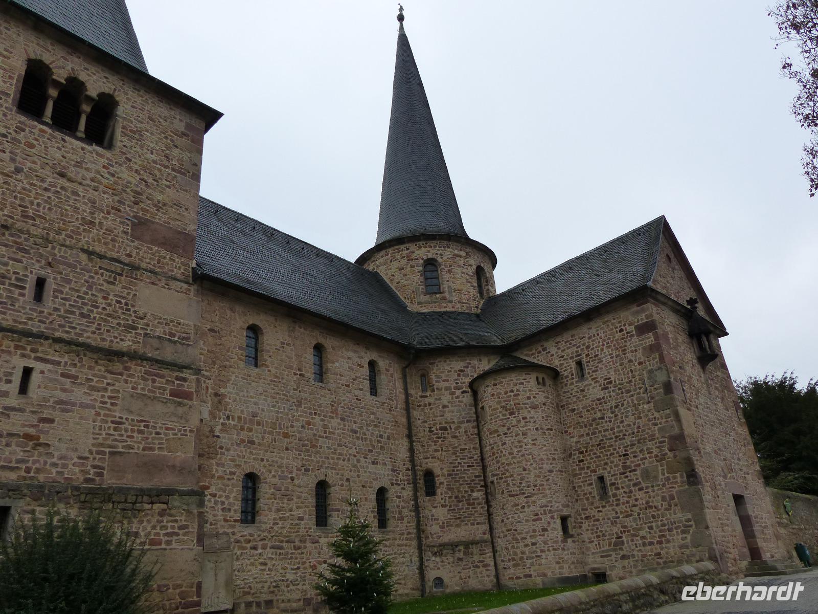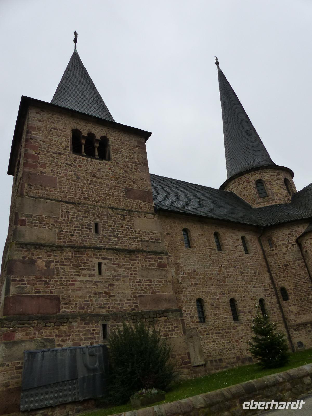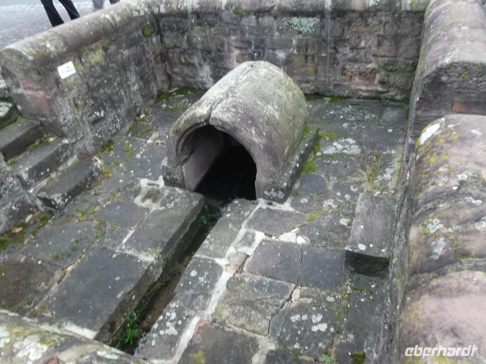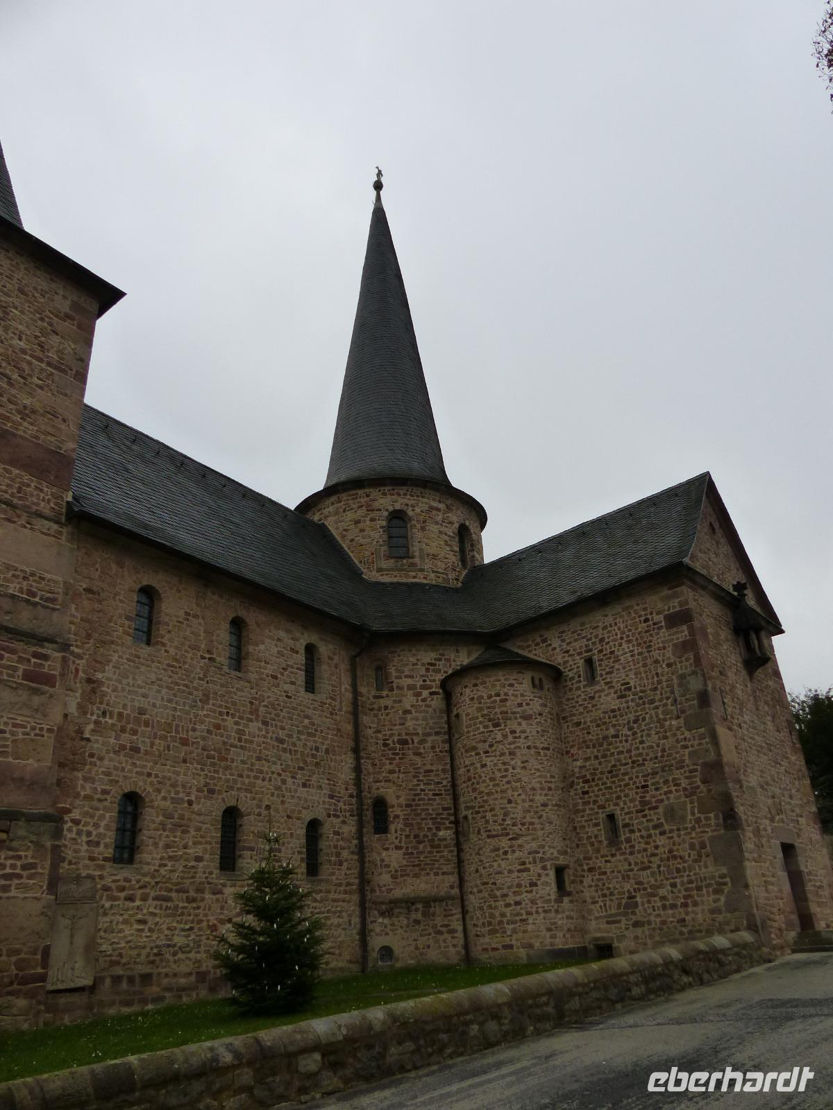 Der heutige Tag - Heiligabend - begann mit einem etwas ungewöhnlichen Besuch. Als Überraschung und „Richtig-Reisen-Extra" fuhren wir zunächst in Richtung Fulda und erreichten am, frühen Vormittag den kleinen Ort Fraurombach. Das heute als Ortsteil in die Stadt Schlitz eingemeindete Dorf ist sehr alt - bereits im 8. Jh. wurde es im Zusammenhang der Missionstätigkeiten der berühmten Missionare und Bischöfe Sturmius und Bonifatius urkundlich erwähnt. Wir bestaunten zunächst den ungewöhnlichen Dorfbrunnen, der eine vertiefte, steinern eingefasste und überdachte Quelle enthält, um die sich alte Sagen ranken und gingen dann zur Dorfkirche.