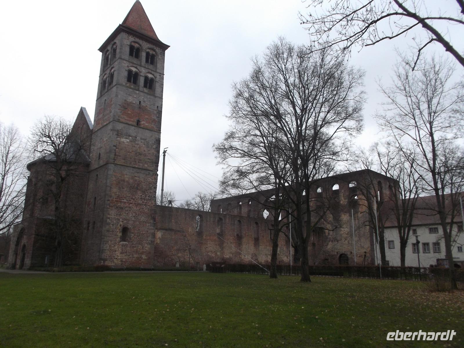 Diese - bzw. die Ruinen des Stiftes - erreichten wir am Ende unseres Stadtrundganges. Der gewaltige Kirchenbau, umgeben von den Resten einer Befestigung und zahlreichen Gebäuden aus verschiedenen Epochen, gilt als größter romanischer Sakralbau Europas. Seit Gründung der Abtei und ihrer Bevorzugung durch Franenkönig Karl den Großen war Hersfeld eines der bedeutendsten und reichsten Klöster auf deutschem Boden - bis es in der Reformation evangelisch wurde und schließlich säkularisiert und an Hessen angeschlossen wurde. In der Stiftsruine finden alljährlich die weithin bekannten Hersfelder Festspiele statt, bei der Theater- und Musikkaufführungen auf der 1400 m²-großen Bühne, deren aufwändige Technik man beim Gang um die Stiftsruine sehen konnte, zu sehen sind.