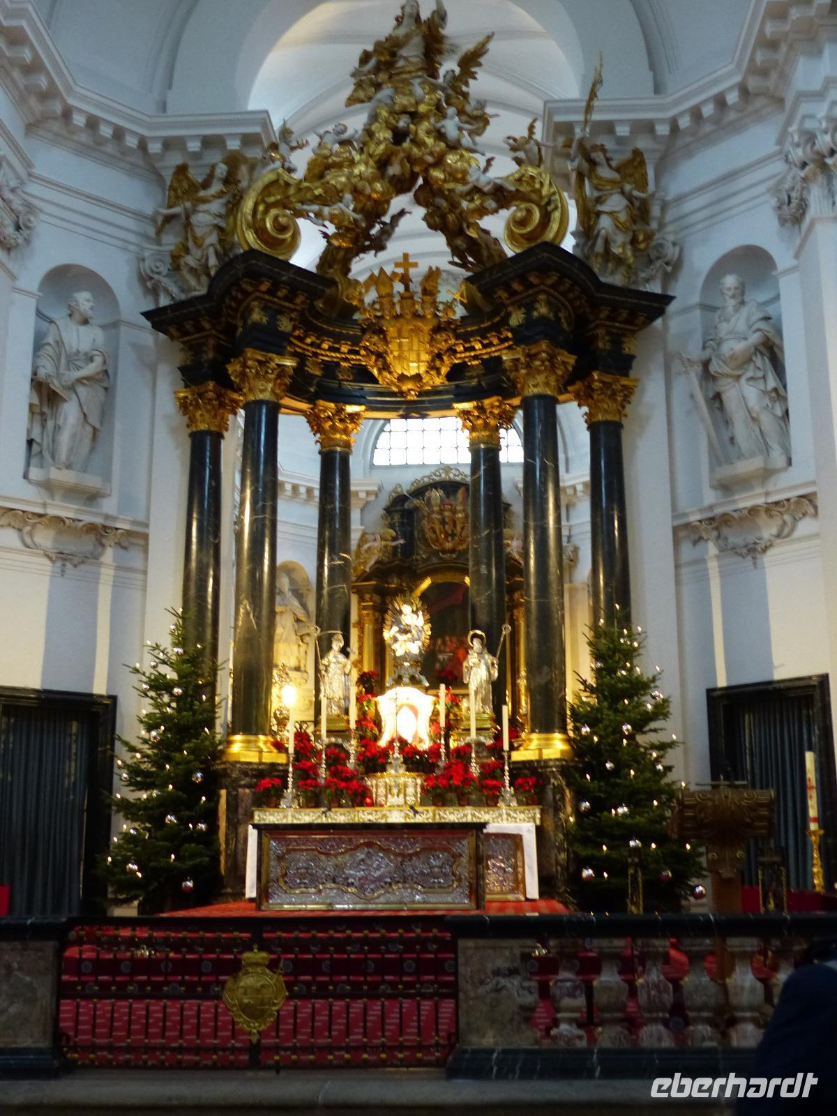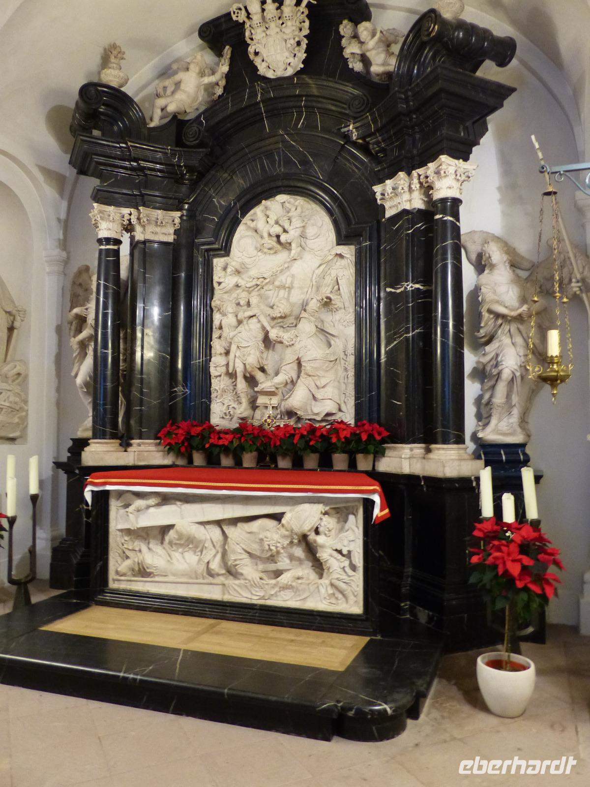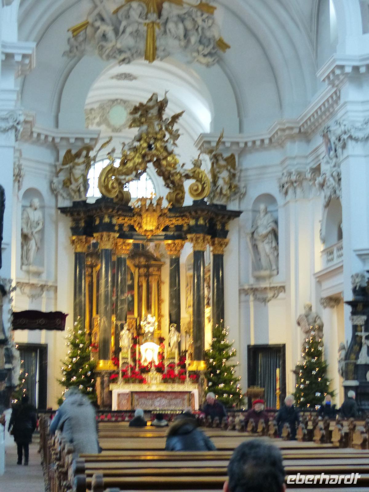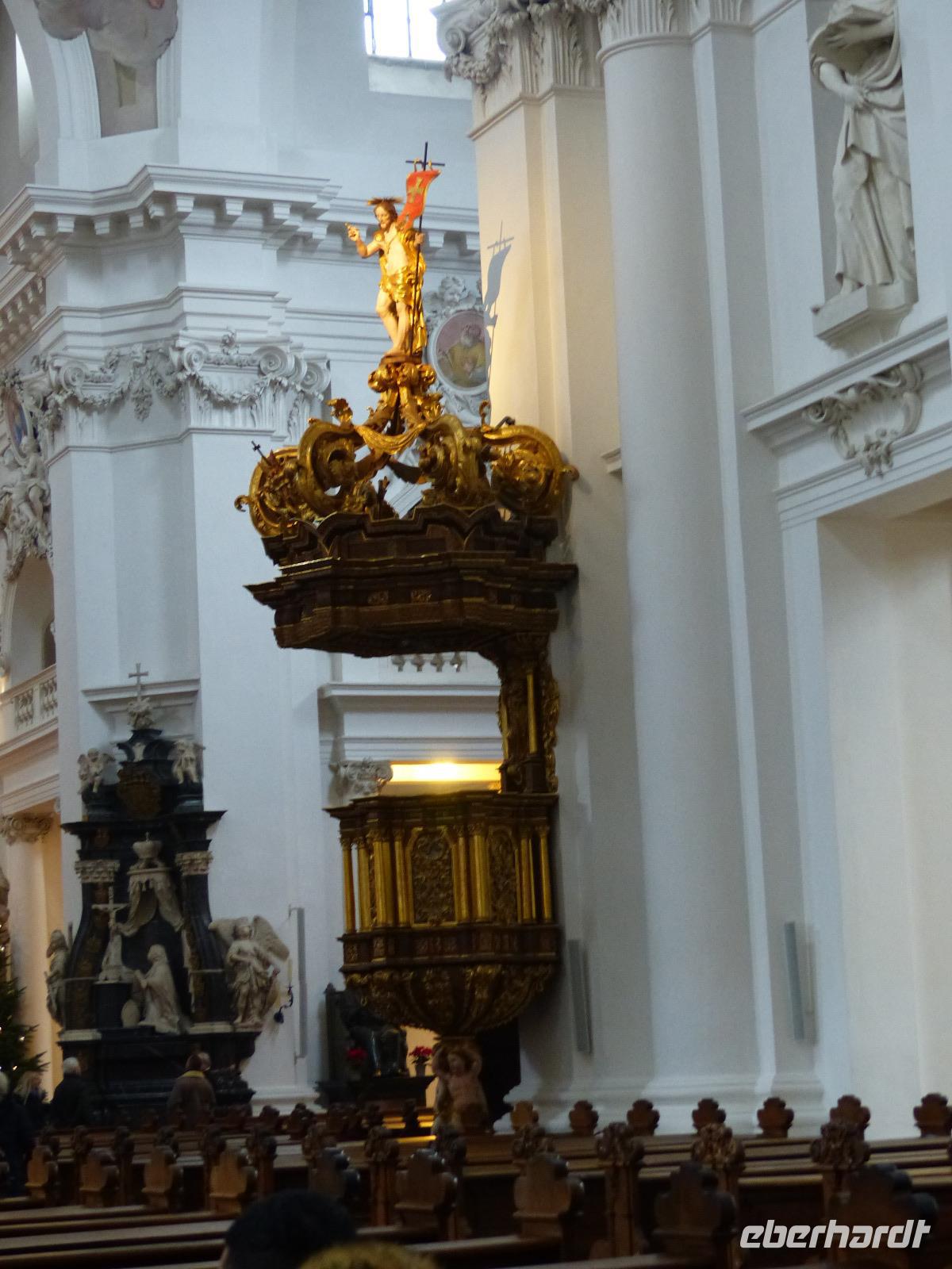 Dann hatten wir noch etwas Freizeit, in dem wir individuell noch den Dom besuchen konnten, den Dientzenhofer seit 1704 in nur wenigen Jahren als barockes Kleinod gestaltete. Die architektonisch klar gegliederte Prunkfassade beherrschen zwei etwa 65 m hohe Türme. Flankiert von den Statuen des Sturmius und des Bonifatius passiert man das Portal in der Westfassade der kreuzförmigen dreischiffigen Pfeilerbasilika und steht in dem für ein sehr bedeutendes katholisches Gotteshaus erstaunlich schlichten Sakralbau. Besonders sehenswert sind die Altäre und die Krypta mit dem reichverzierten Sarkophag, die die Gebeine des Heiligen enthalten. Diese sind das Ziel der alljährlichen Bonifatius-Wallfahrt.