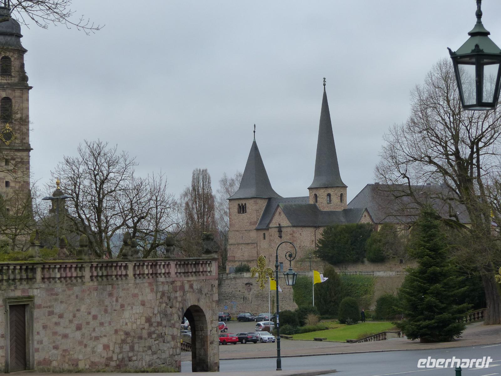 Am ersten Weihnachtsfeiertag brachen wir auf in die Bischofsstadt Fulda. Sie spielte in der christlichen Geschichte Deutschlands und bereits im frühen Mittelalter eine bedeutende Rolle. Der Missionar Sturmius war Gründer und erster Abt des Klosters Fulda, obwohl in vielen Geschichtsbüchern auch dem bekannteren und oft als „Apostel der Deutschen" apostrophierten Missionar Bonifatius diese Ehre zu Teil wird. Zumindest ist Bonifatius in Fulda beigesetzt worden und Frankenkaiser Karl der Große machte den Ort kurz darauf zum Reichskloster. Bedeutendster Bau ist der ganz in Barock prunkende Dom St. Salvator, älteste Kirche mit Resten aus dem 8. Jh. jedoch die danebenliegende Michaelskirche.