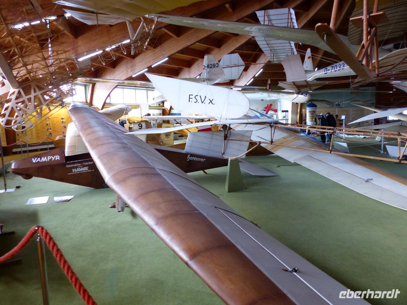 Trotz inzwischen milder Temperaturen war hier der Schnee noch nicht weggetaut und türmte sich am Flughafen Wasserkuppe noch fast meterhoch. Hier oben entspringt nicht nur die Fulda, die durch die gleichnamige Stadt fließt und sich später in Hann. Münden mit der Werra zur Weser vereinigt, sondern der Berg ist überregional als „Wiege des Segelflugs" bekannt. Deshalb gab es hier nicht nur die älteste Segelflugschule Deutschlands, sondern uns interessierte das Deutsche Segelflugmuseum, mit über 4.000 m² Ausstellungsfläche das größte seiner Art. 2006 erweitert und neu eröffnet, zeigt das auf dem höchsten Berg der Rhön gelegenen Museum die Geschichte und die Entwicklung des Segelfluges und enthält dabei fast alle Flugzeige vom einfachen Gleiter, mit denen die ersten erfolgreichen Flugversuche unternommen wurden, über legendäre Flugzeuge wie die „Vampyr" bis zu den modernsten Varianten von Kunststoff-Seglern. Viele Exponate zeigen auch die Entwicklung des Modellflugs.