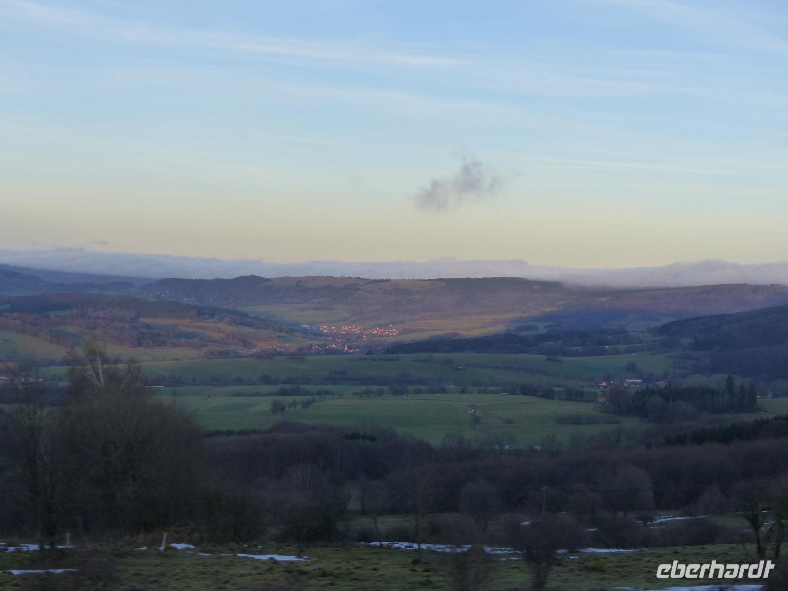 Dann trafen wir den Bus wieder und brachen für den Nachmittag auf zu einer landschaftlich schönen Durchfahrt durch die Rhön. Das Wetter spielte mit guter Sicht und sogar etwas Sonne mit, bis wir Hessens höchste Erhebung und den bekanntesten Berg der schönen Rhön erreichten. In über 900 Höhenmetern wurde es nicht nur diesig, sondern wir fuhren in richtiges Winterwetter.