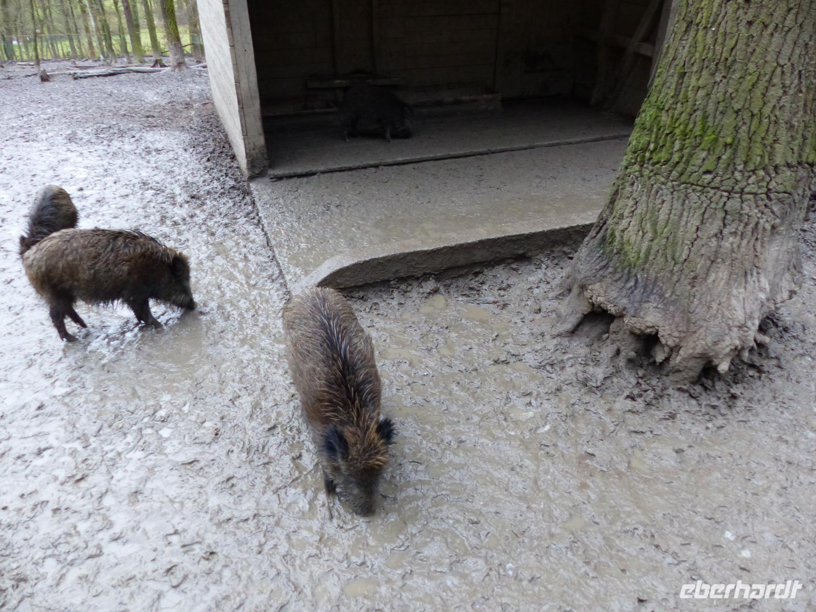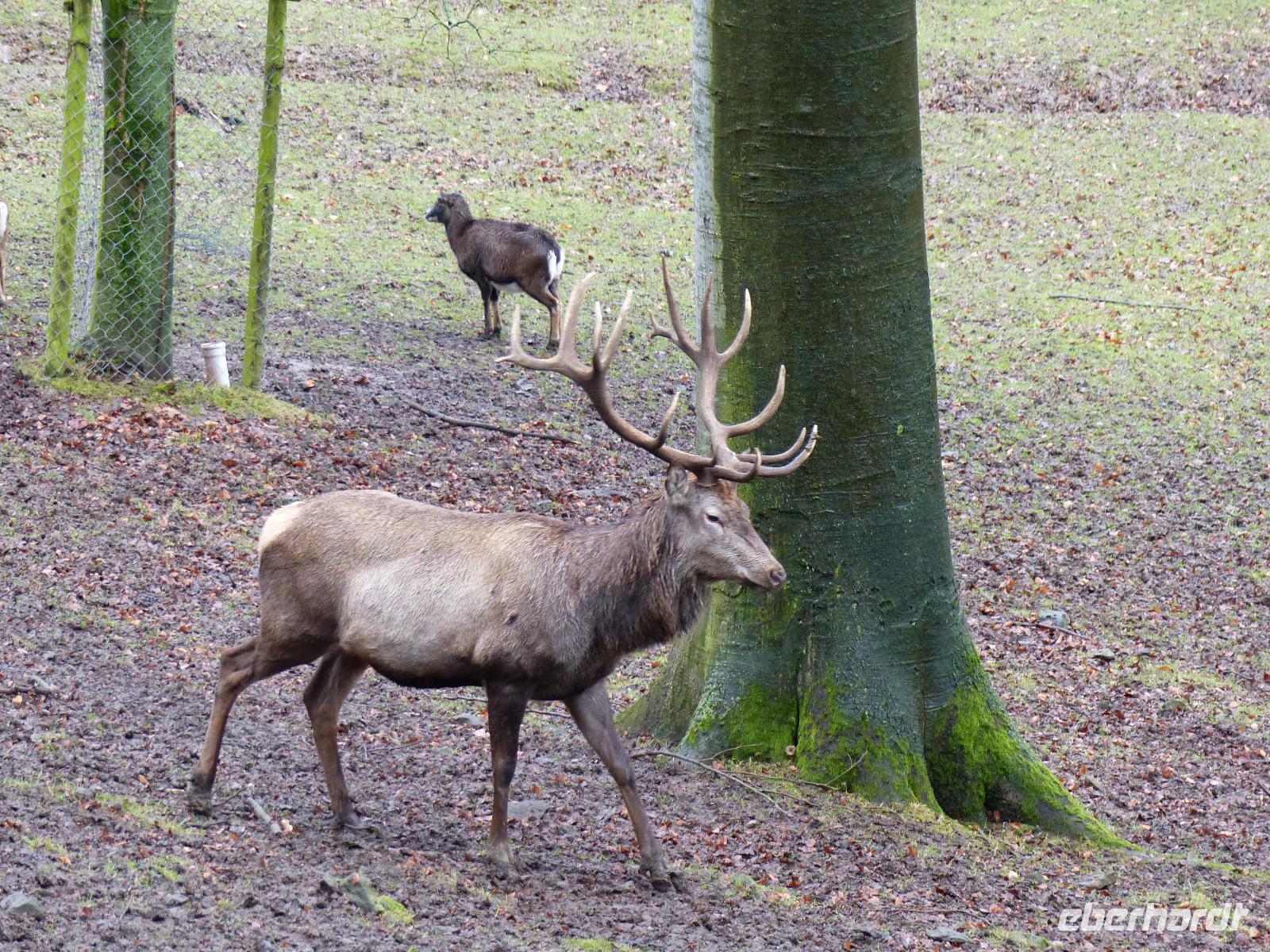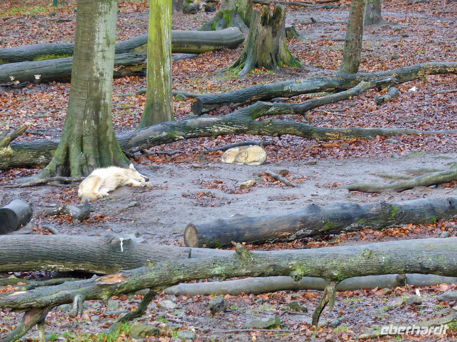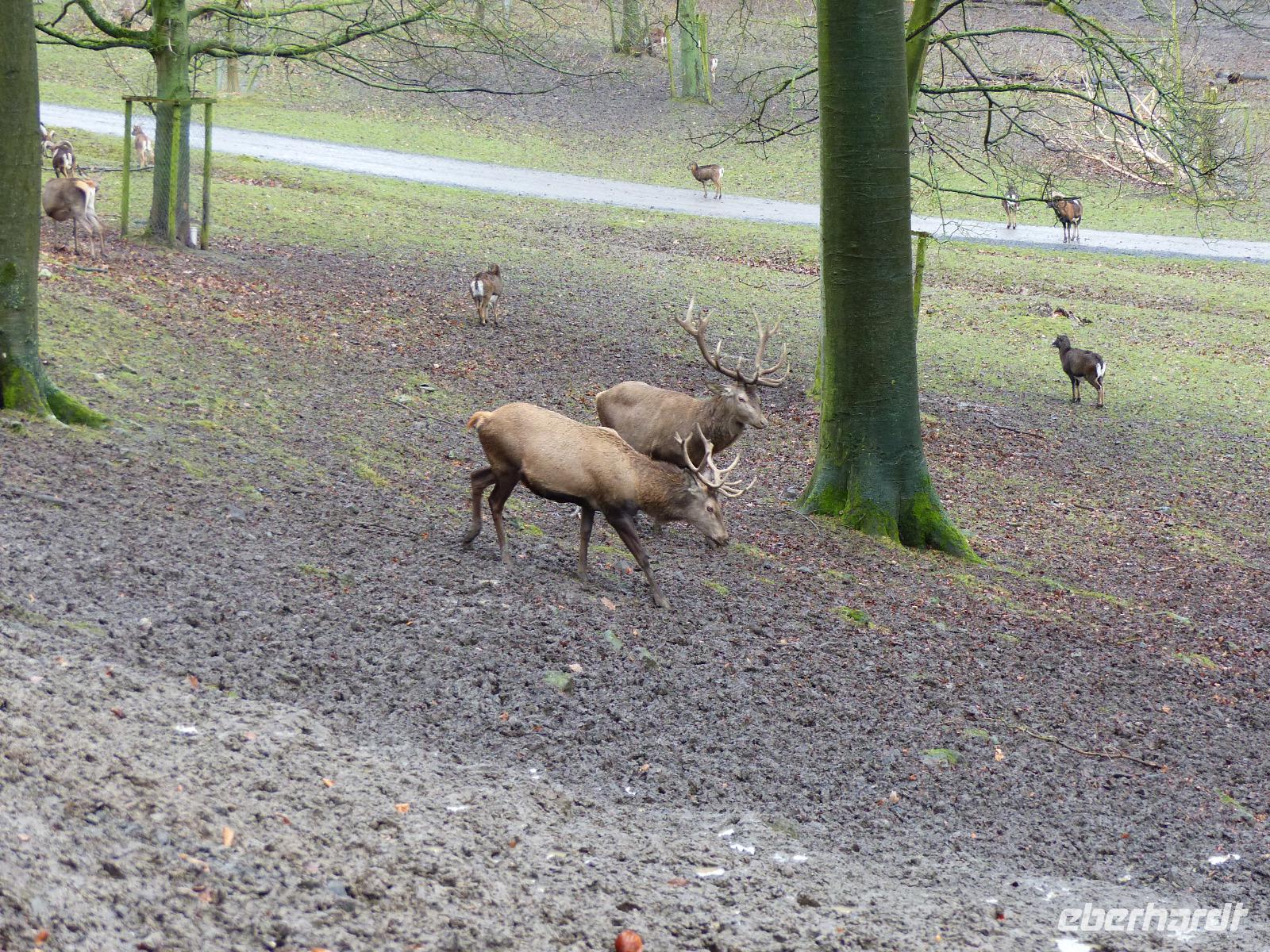 Und wir wurden nicht enttäuscht! Gleich nach Betreten des Wildparks kamen uns ganz zutraulich ganze Herden von Rehen und Hirschen entgegen. Luchse waren in ihrem Gehege zu sehen, nur wenig entfernt gab es Wildpferde, Wildschweine und tatsächlich Wölfe! Da auch das Wetter seit Alsfeld trocken war, hatten wir einen angenehmen Spaziergang, der seinen Höhepunkt in der nachmittäglichen Wildfütterung fand.