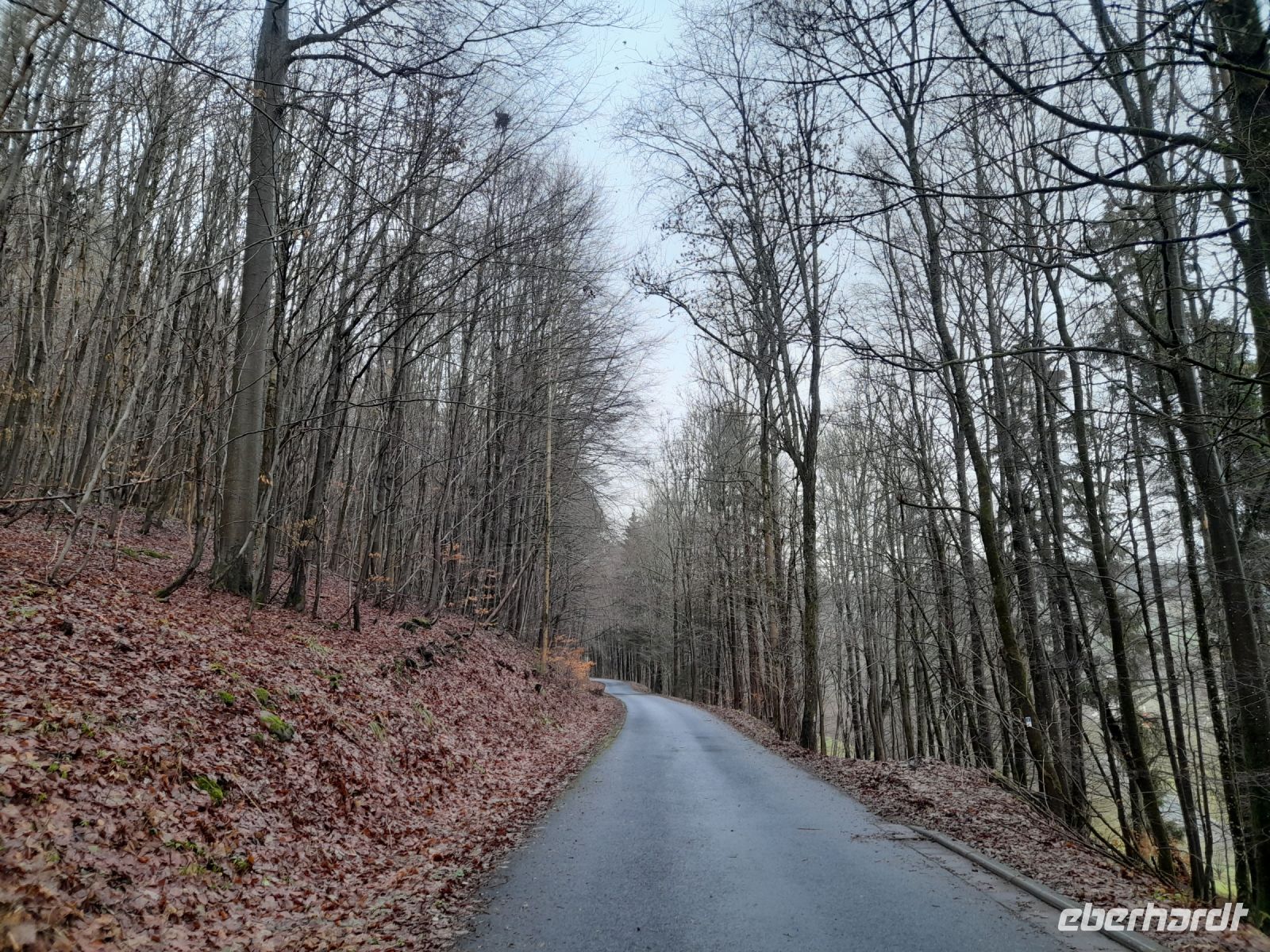 Am Nachmittag entschließen sich dann einige, mit Chef und Juniorchef des Gasthofs einen Spaziergang durch den sogenannten Glaswald zu machen. Die Buchen, die hier wachsen, waren Brennmaterial für die Feuer der in der Rhön ansässigen Glasmacher, daher kommt der Name. Auch wenn es für Schnee viel zu mild ist, ist der dichte Wald schön anzusehen und die frische Luft tut allen gut. Zur Belohnung gibt es dann für alle eine Tasse Glühwein und Gebäck auf der Terrasse.