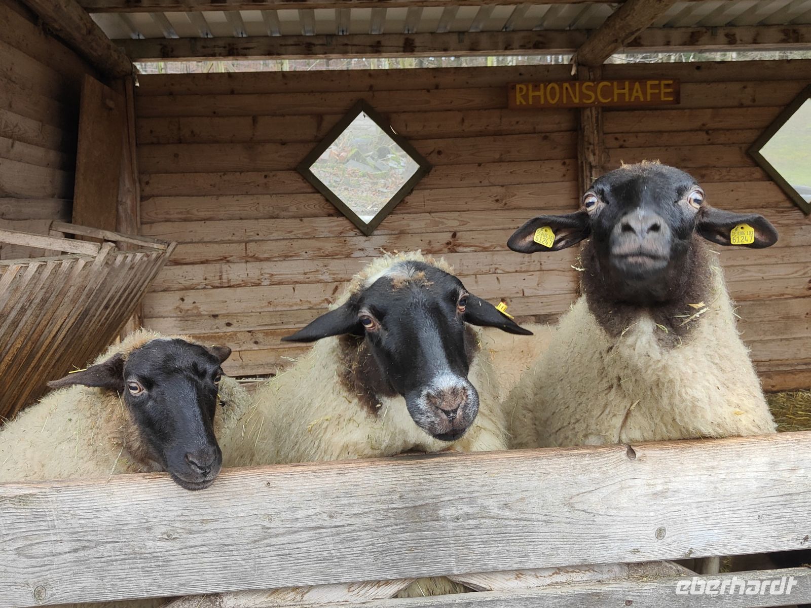 Der Regen von gestern hat sich zum Glück gelegt und nach einem leckeren Frühstück sind wir gespannt darauf, was der Tag uns bringen wird. Zunächst versuchen wir den eigentlichen Plan für den Tag umzusetzen und von 700 Metern Höhe hinauf zur Wasserkuppe zu fahren. Der höchste Berg Hessens ist bekannt für die erste Segelflugschule Deutschlands und bietet - normalerweise - auf 950 Metern einen tollen Panoramablick. Heute kann man jedoch keine fünf Meter weit schauen und wir entscheiden uns für Plan B. Zunächst geht es hinunter zum Guckaisee, wo wir einen kleinen Spaziergang machen, dann fahren wir weiter nach Gersfeld. Der dort ansässige Wildpark gilt als einer der schönsten und natürlichsten Deutschlands und beherbergt neben den berühmten Rhönschafen auch Hirsche, Damwild, Wisente, Wildkatzen und Raubvögel. Auch das Wetter meint es gut mit uns und die Sonne kämpft sich tapfer durch die Wolken. Ein toller Vormittag.