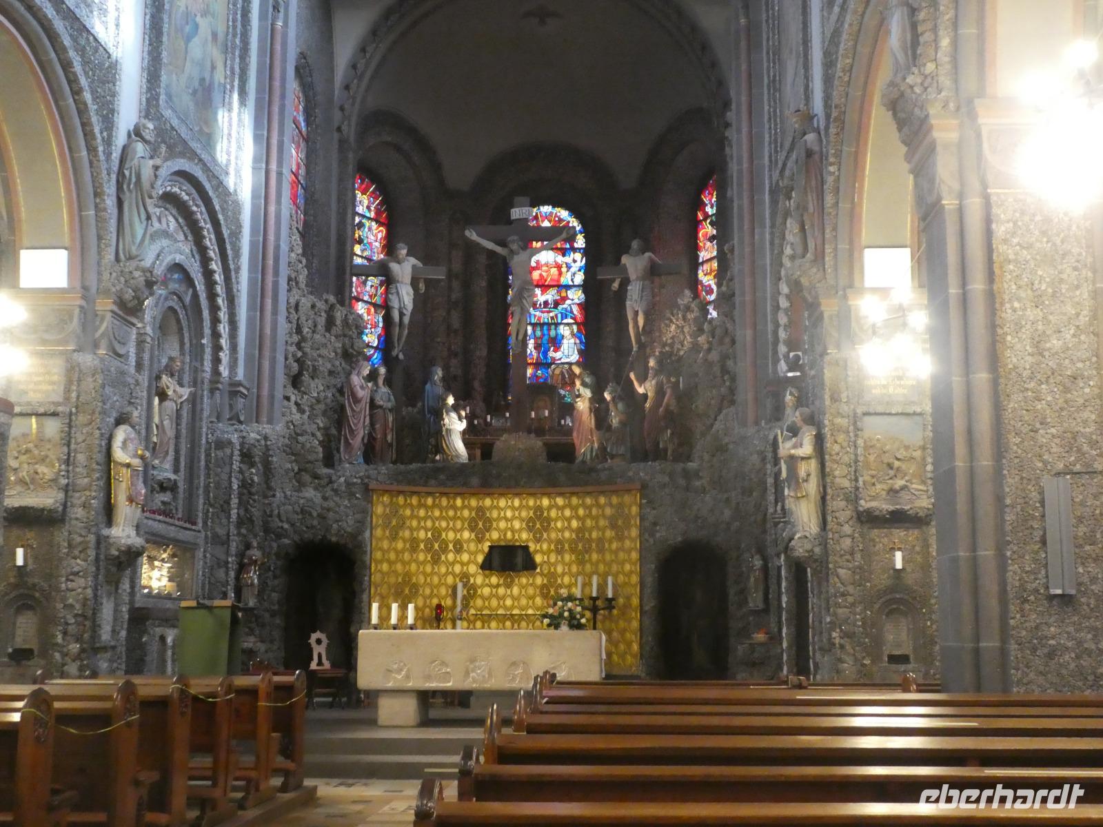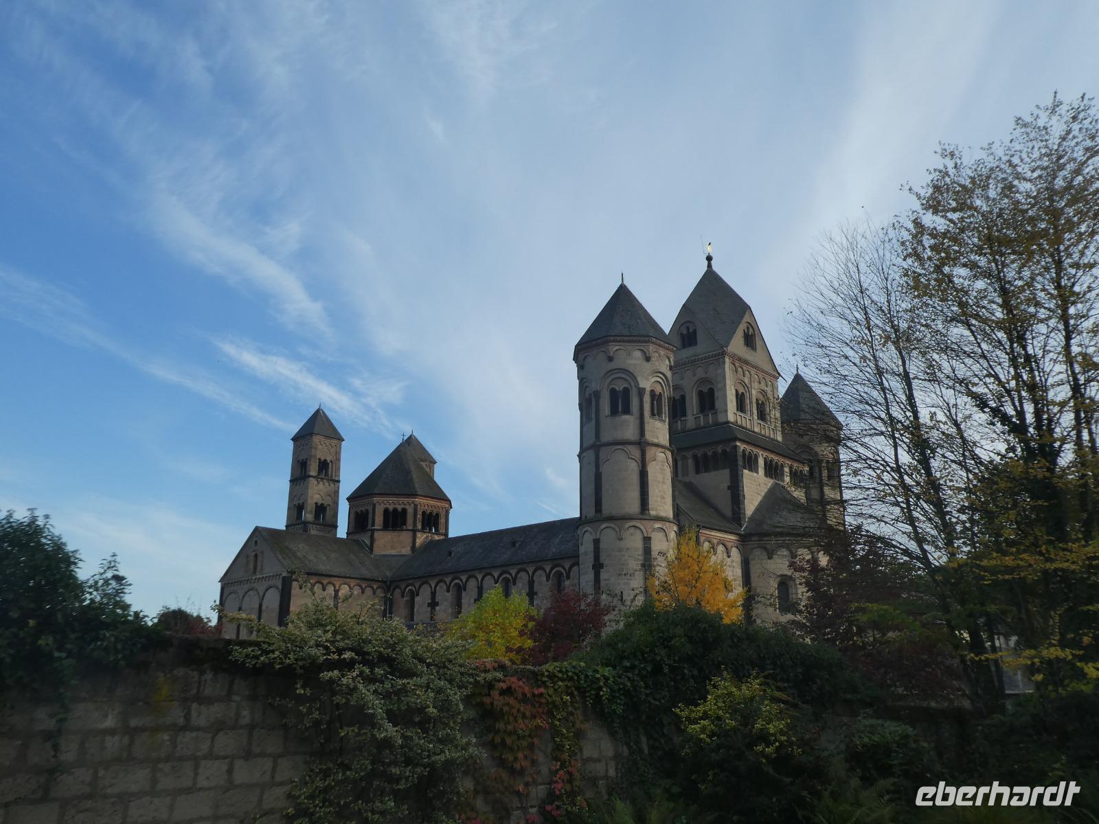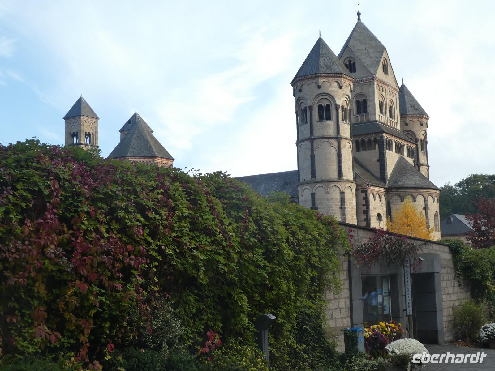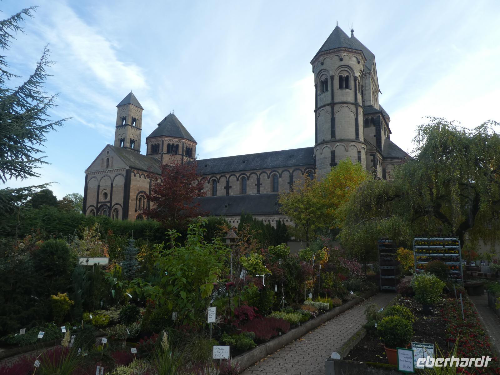 Am Morgen wollten wir die Mosenmühle besichtigen. Jedoch waren wir dort nicht willkommen. Ein kurzer Anruf und wir fuhren zum Schloss Arenfels. Die ehemalige Burg aus dem 13. Jahrhundert wurde Mitte des 16. Jahrhunderts zum Schloss ausgebaut. Das jetzige Aussehen erhielt es 1858 als der Kölner Dombaumeister das Schloss fertig umgebaut hat. Leider wurde das Schloss im 2. Weltkrieg stark zerstört und von den Besatzungsmächten geplündert. Der jetzige Besitzer Antonius Freiherr Geyr von Schweppenburg beschloss ein Sanierungsprogramm was immer noch andauert. Inzwischen wird das Schloss von einer Eventfirma gepachtet. Der Pächter, ein engagierter junger Mann mit viel Elan und innovativen Ideen, führte uns persönlich durch „sein" Schloss. Auch wenn die Original Möbel nicht mehr vorhanden waren spürte man doch den alten Charme der Räumlichkeiten. Diese werden für verschiedene Veranstaltungen wie Tagungen, Firmenfeiern und Familienfeiern genutzt. Auch die Kamine können genutzt werden für romantische Hochzeitsfeiern. Besonders sehenswert waren die kleine Kapelle, der Rittersaal, das chinesische Zimmer und die eiserne Treppe. Wir werfen noch einen Blick in den ehemaligen Weinkeller der jetzt als Restaurant genutzt wird. Sehr gemütlich. Nach dieser interessanten Stippvisite legten wir in Andernach eine Mittagspause ein. Anschließend fuhren wir nach Brohl. Dort bestiegen wir den Vulkanexpress der uns durch das Brohltal nach Engeln brachte. Auf einer Strecke von 18 km fuhren wir vom Rhein bis in die Eifel. Eine sanfte Landschaft begleitete uns. Wir fuhren durch 1 Tunnel und überquerten 2 Viadukte und erreichten Oberzissen. Dort war die Talstrecke zu Ende und die letzten Kilometer ging es steil Bergauf. Wir fuhren am Wahrzeichen des Brohtal vorbei an der Burg Olbrück. Der Schaffner erzählte uns etwas über die Geschichte und die Entstehung des Vulkanexpress. In Engeln wartete schon der Bus auf uns und wir fuhren nach Maria Laach in die Vulkaneifel. Wir besuchten das gleichnamige Benediktiner Kloster. Im Klosterforum sahen wir einen unterhaltsamen Film und erfuhren etwas über das Leben und den Tagesablauf der 35 Mönche. Sie arbeiten in verschiedenen Handwerksbetrieben wie in der Keramikmanufaktur, Buchbinderei und der Kunstschmiede. Weiterhin betreiben sie eine Gärtnerei, ein Hotel und Klostergaststätten. Nach diesem interessanten Film spazierten wir zur romanischen Basilika dem Herzstück der Klosteranlage und bestaunten das Mosaikbild im Chorraum. Anschließend schauten wir noch in der Gärtnerei und im Hofladen vorbei.