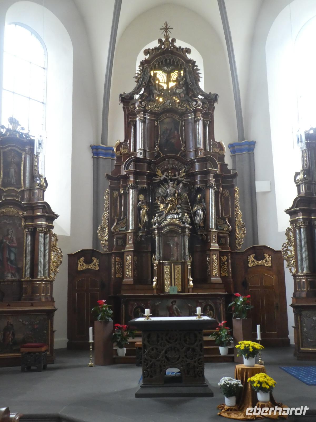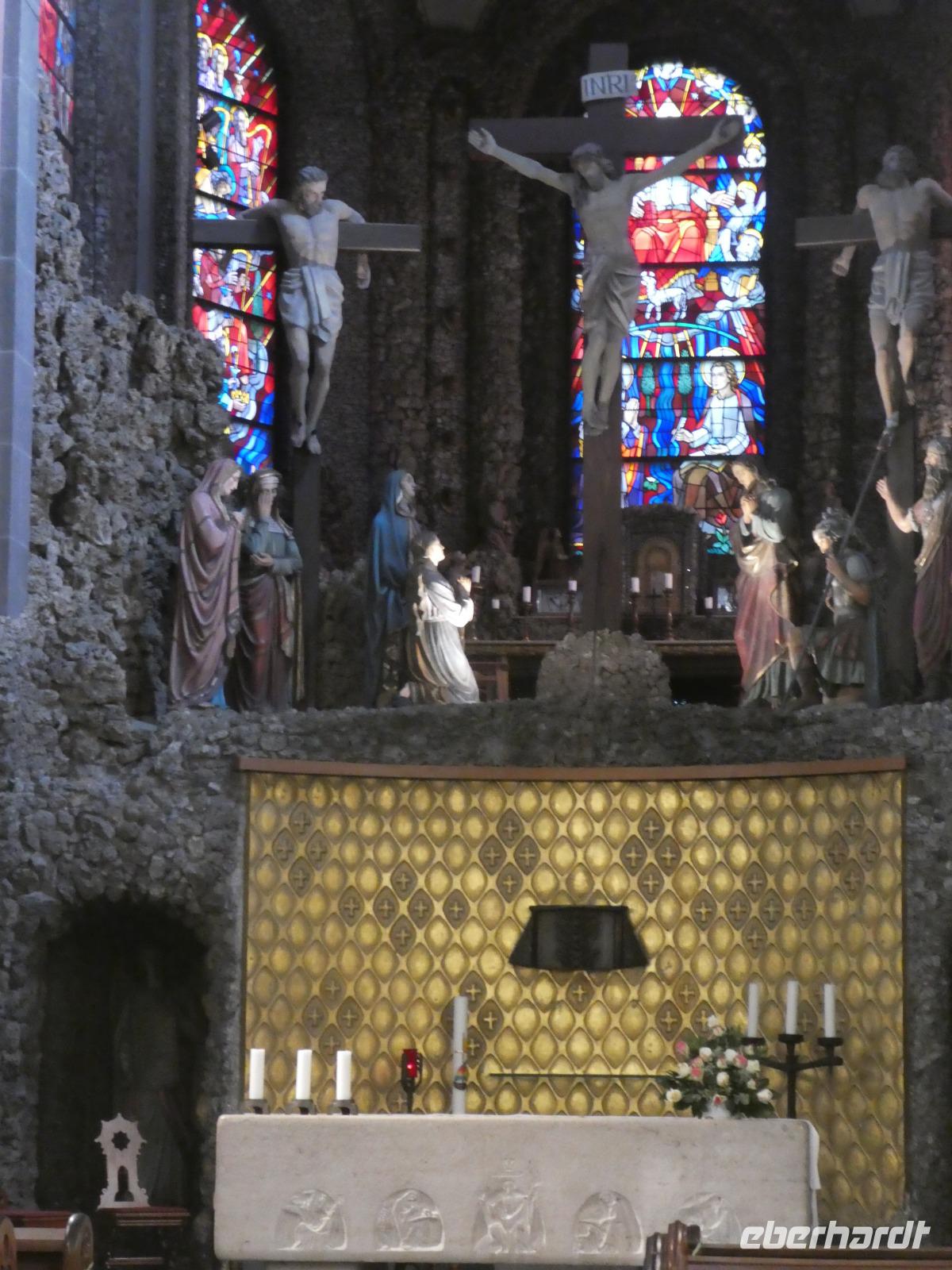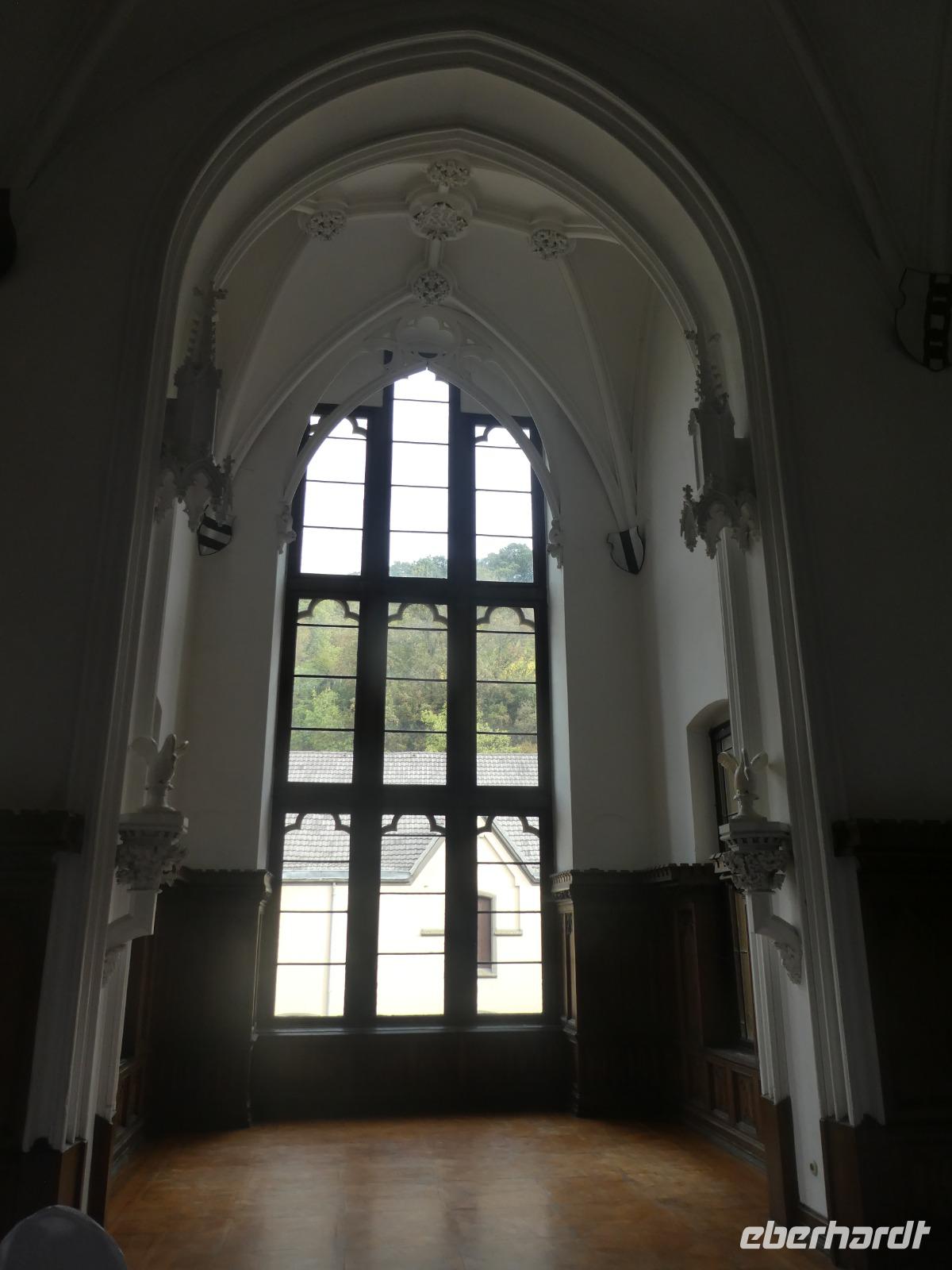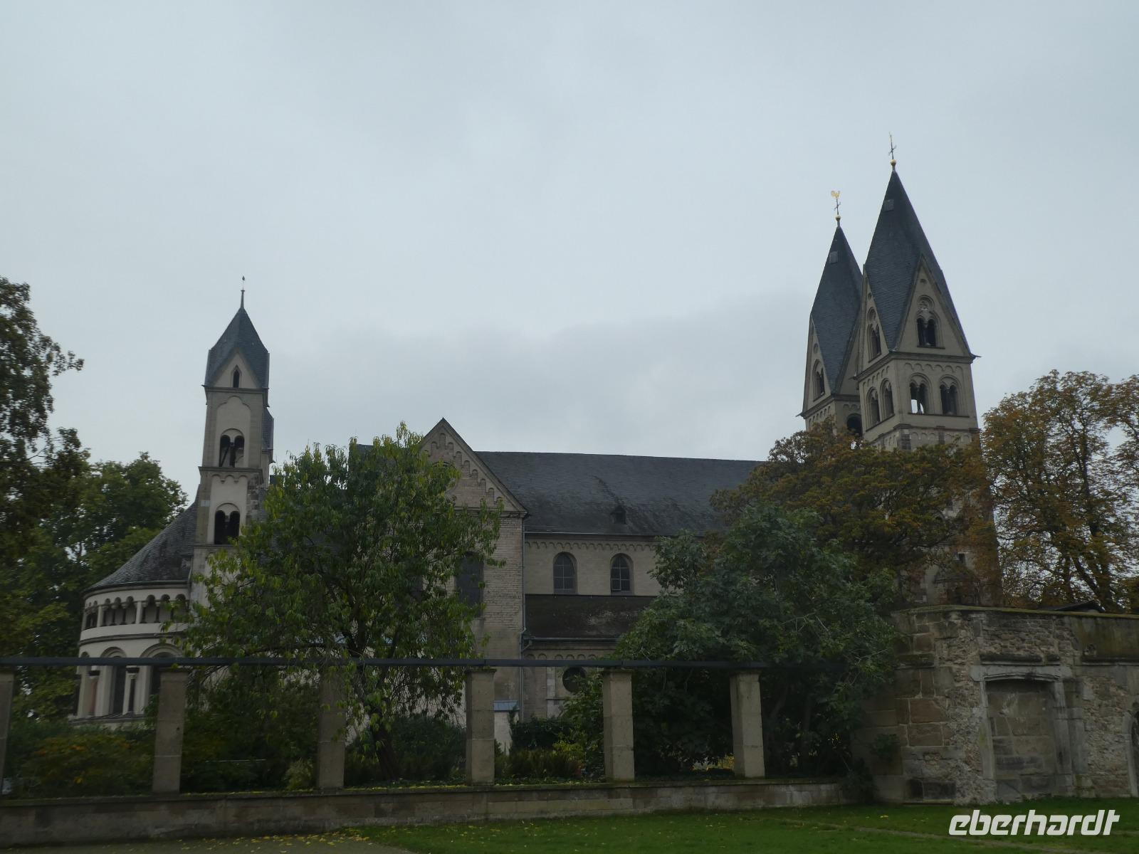 Am Morgen wollten wir die Mosenmühle besichtigen. Jedoch waren wir dort nicht willkommen. Ein kurzer Anruf und wir fuhren zum Schloss Arenfels. Die ehemalige Burg aus dem 13. Jahrhundert wurde Mitte des 16. Jahrhunderts zum Schloss ausgebaut. Das jetzige Aussehen erhielt es 1858 als der Kölner Dombaumeister das Schloss fertig umgebaut hat. Leider wurde das Schloss im 2. Weltkrieg stark zerstört und von den Besatzungsmächten geplündert. Der jetzige Besitzer Antonius Freiherr Geyr von Schweppenburg beschloss ein Sanierungsprogramm was immer noch andauert. Inzwischen wird das Schloss von einer Eventfirma gepachtet. Der Pächter, ein engagierter junger Mann mit viel Elan und innovativen Ideen, führte uns persönlich durch „sein" Schloss. Auch wenn die Original Möbel nicht mehr vorhanden waren spürte man doch den alten Charme der Räumlichkeiten. Diese werden für verschiedene Veranstaltungen wie Tagungen, Firmenfeiern und Familienfeiern genutzt. Auch die Kamine können genutzt werden für romantische Hochzeitsfeiern. Besonders sehenswert waren die kleine Kapelle, der Rittersaal, das chinesische Zimmer und die eiserne Treppe. Wir werfen noch einen Blick in den ehemaligen Weinkeller der jetzt als Restaurant genutzt wird. Sehr gemütlich. Nach dieser interessanten Stippvisite legten wir in Andernach eine Mittagspause ein. Anschließend fuhren wir nach Brohl. Dort bestiegen wir den Vulkanexpress der uns durch das Brohltal nach Engeln brachte. Auf einer Strecke von 18 km fuhren wir vom Rhein bis in die Eifel. Eine sanfte Landschaft begleitete uns. Wir fuhren durch 1 Tunnel und überquerten 2 Viadukte und erreichten Oberzissen. Dort war die Talstrecke zu Ende und die letzten Kilometer ging es steil Bergauf. Wir fuhren am Wahrzeichen des Brohtal vorbei an der Burg Olbrück. Der Schaffner erzählte uns etwas über die Geschichte und die Entstehung des Vulkanexpress. In Engeln wartete schon der Bus auf uns und wir fuhren nach Maria Laach in die Vulkaneifel. Wir besuchten das gleichnamige Benediktiner Kloster. Im Klosterforum sahen wir einen unterhaltsamen Film und erfuhren etwas über das Leben und den Tagesablauf der 35 Mönche. Sie arbeiten in verschiedenen Handwerksbetrieben wie in der Keramikmanufaktur, Buchbinderei und der Kunstschmiede. Weiterhin betreiben sie eine Gärtnerei, ein Hotel und Klostergaststätten. Nach diesem interessanten Film spazierten wir zur romanischen Basilika dem Herzstück der Klosteranlage und bestaunten das Mosaikbild im Chorraum. Anschließend schauten wir noch in der Gärtnerei und im Hofladen vorbei.