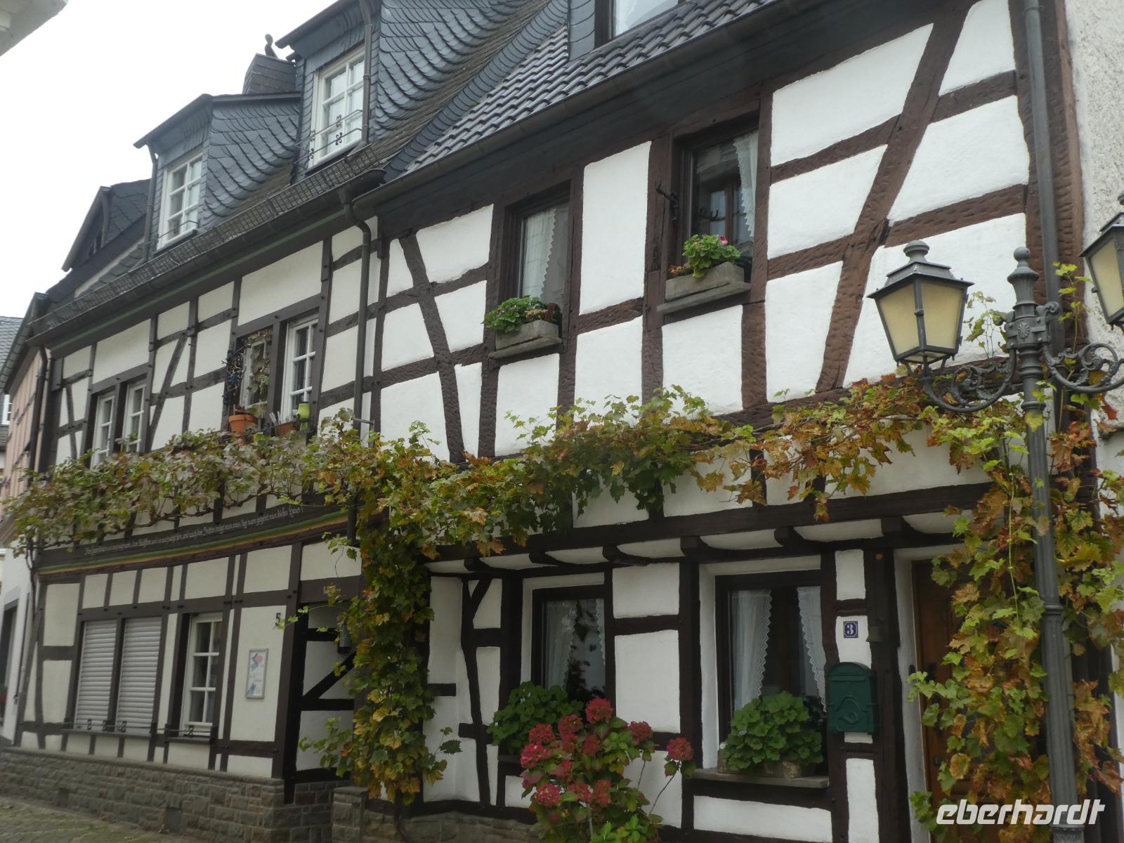 Mit einer örtlichen Reiseleiterin erkundeten wir da Ahrtal. In dem bekannten Kurort Bad Nauheim unternahmen wir einen Spaziergang durch den Ort und die die Kuranlagen sowie zum Kasino. Im 19. Jh. wurde eine Thermalquelle entdeckt die Apollinaris nach dem Schutzpatron des Weines benannt wurde. Seit dieser Zeit entwickelte sich der Ort zu einem berühmten Heilbad. Viele Prominente und der europäische Adel kamen zu Besuch. Einige Gebäude wie das Kurhaus und das Badehaus stammen noch aus dieser Zeit. Nach unserem Rundgang fuhren wir durch das romantische Ahrtal nach Mayschoss wo sich oberhalb des Ortes die Saffenburg erhebt. In dem bekannten Weinort befindet sich die älteste Winzergenossenschaft der Welt. Während einer interessanten und aufschlussreichen Führung durch die Weinkeller und das Weinbaumuseum erhielten wir Informationen über den Weinanbau im Ahrtal. Bekannt ist das Tal vor allem durch den Anbau von Rotwein. Natürlich durfte eine Weinverkostung nicht fehlen. Dazu wurde eine Winzerplatte gereicht. Nach dieser Stärkung fuhren wir in die romantische Stadt Ahrweiler. Sie ist noch komplett durch eine mittelalterliche Stadtmauer umgeben. Diese stammt aus dem 13. Jh. und verfügt noch über Wehrgänge, Türme und Stadttore. Durch das Ahrtor liefen wir entlang der Stadtmauer und erfuhren einiges über die Geschichte der Stadt angefangen von den Römern bis zur Gegenwart. Durch die schmalen Gassen erreichten wir den Marktplatz mit seinem Rathaus und der der St. Laurentius Kirche. Von dort gab es viele Gassen mit wunderschönen Fachwerkhäusern.