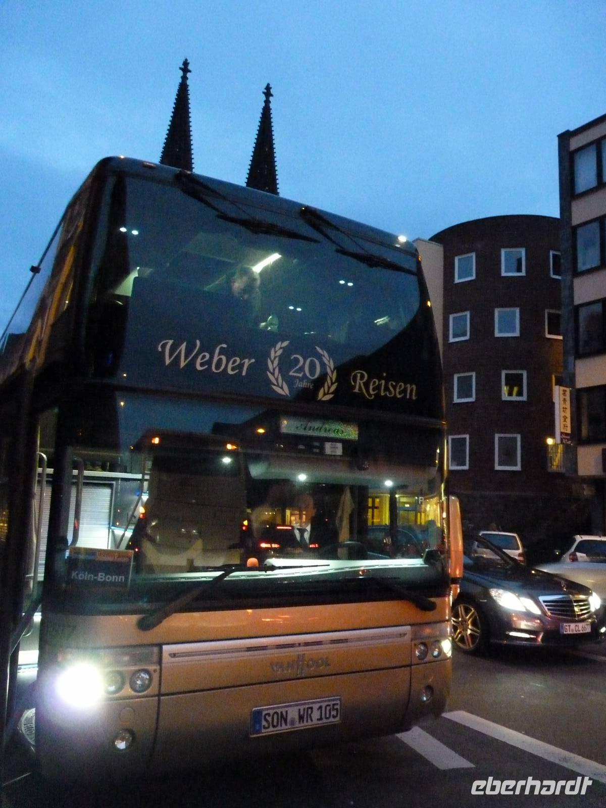 Natürlich gab es wieder aller zwei Stunden Pausen, um die Beine zu vertreten, ein Kaffee zu trinken oder sich an den „Scheinslendchen im Darm" zulaben.Am Nachmittag hatten wir Köln, die historische Domstadt am Rhein mit großer Geschichte, Kunst und Kultur, Karneval und Kölsch erreicht.