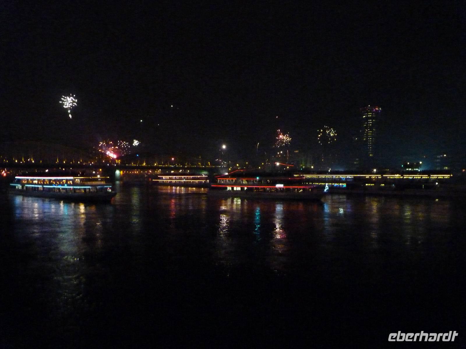 Imposant dann das Höhenfeuerwerk direkt vor dem Dom in Köln auf dem Rhein. Unsere Flotte umfasste 12 Schiffe, die sich dieses Schauspiel nicht entgehen ließen.