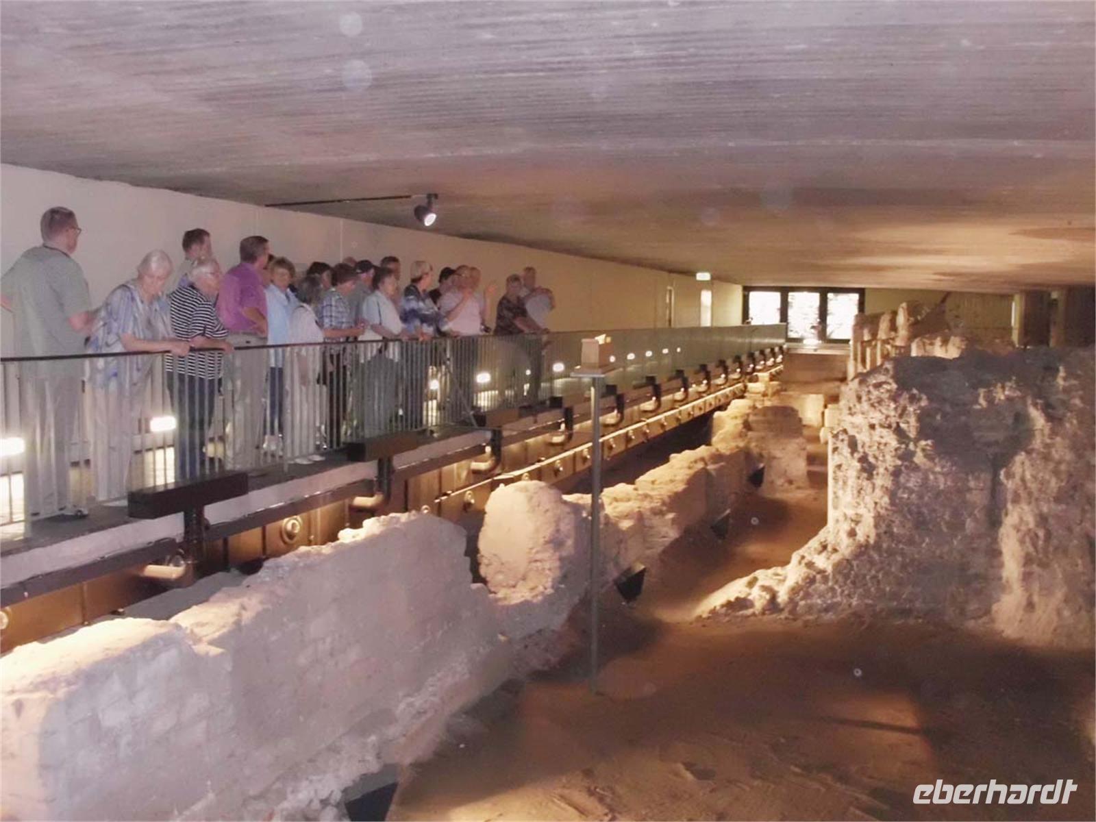 Nach einem reichhaltigen Frühstücksbuffet, das keine Wünsche offen lässt begeben wir uns in die Stadt, wo unser Gästeführer pünktlich eintrifft. Unter dem Rathaus erblicken wir die Fundamente des Prätoriums, das schon gleich nach dem Krieg im zu 90% zerstörten Köln ausgegraben wurde. Hier saß der Römische Statthalter Niedergermaniens. Das Areal wird z. Z. großflächig von Grabungen umgeben, die zu einer riesigen archäologischen Zone im Herzen der Stadt werden sollen. In Ihr wird sich auch die mittelalterliche Mikwe, das jüdische Ritualbad befinden, in die wir zum Beginn der Führung hinabsteigen.