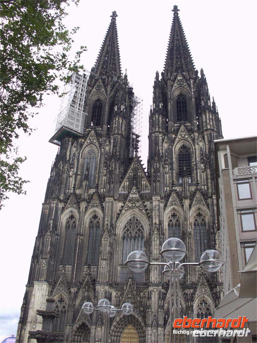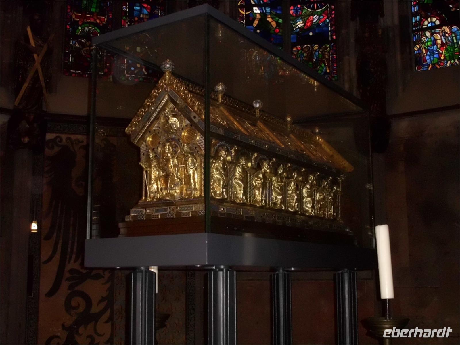 Kein Besuch in Köln, ohne den Dom in Augenschein genommen zu haben. Das gehört zu einem Kölnbesuch einfach dazu. Superlative sind über 10000qm Fensterfläche, und die Westfassadefläche, mit über 7000 qm die größte der Welt. Innen besticht das gotische über 61 m hohe Langhaus, das den Blick des Besuchers automatisch auf den goldenen Schrein der hl. drei Könige im Chor lenkt. Beindruckend ist auch das seinerzeit sehr umstrittene Westfenster im Querhaus von Gerhard Richter, das aus 11500 verschiedenfarbigen Glasquadraten besteht und bei Sonne das Licht wie bunte Edelsteine in die Kathedrale wirft.