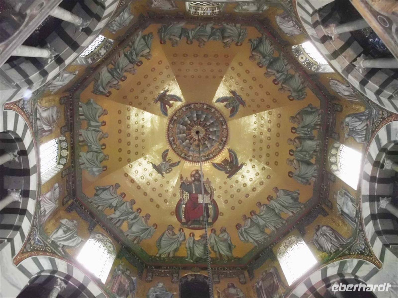 Danach steht ein Rundgang durch die Domschatzkammer an, wo zu. A. das berühmte Lotharkreuz und der antike Sarkophag Karls zu sehen sind. Vor der Abfahrt gehen wir zum Elisenbrunnen, wo schwefelhaltiges Wasser mit 53 Grad Celsius in zwei Granitbecken plätschert. Es riecht nach faulen Eiern und trinken sollte