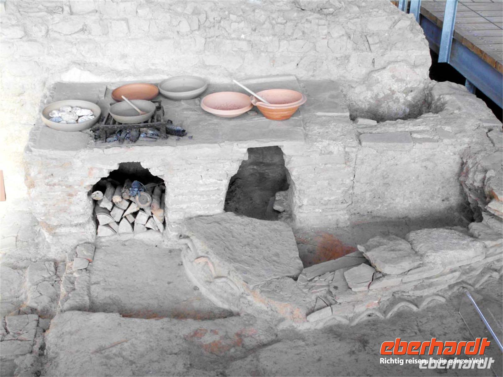 und teilrekonstruiert. Dies betrifft z. B. den Hafentempel, eine römische Herberge samt Thermen, das Amphitheater, einige Handwerkerhäuser und die Stadtmauer mit Toren. Diese umschloss mit knapp 3,5 km Länge ein Areal von 73 Hektar, in dem im 2. und 3. Jh. gut 10000 Menschen lebten. Den Abschluss unseres langen Besuchs stellt der Rundgang durch das Museum dar, den dank Audioguides jeder nach seinen eigenen Vorlieben gestalten kann.